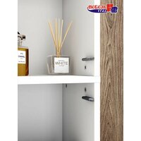 Этот белый шкаф-пенал не только прекрасно вписывается в интерьер, благодаря своему светлому оттенку, он также обеспечивает надёжное хранение вещей. Его функциональность позволяет использовать его для хранения разнообразных предметов, включая туалетные принадлежности, дополнительные полотенца или даже косметику, что делает его отличным выбором для ванной комнаты.