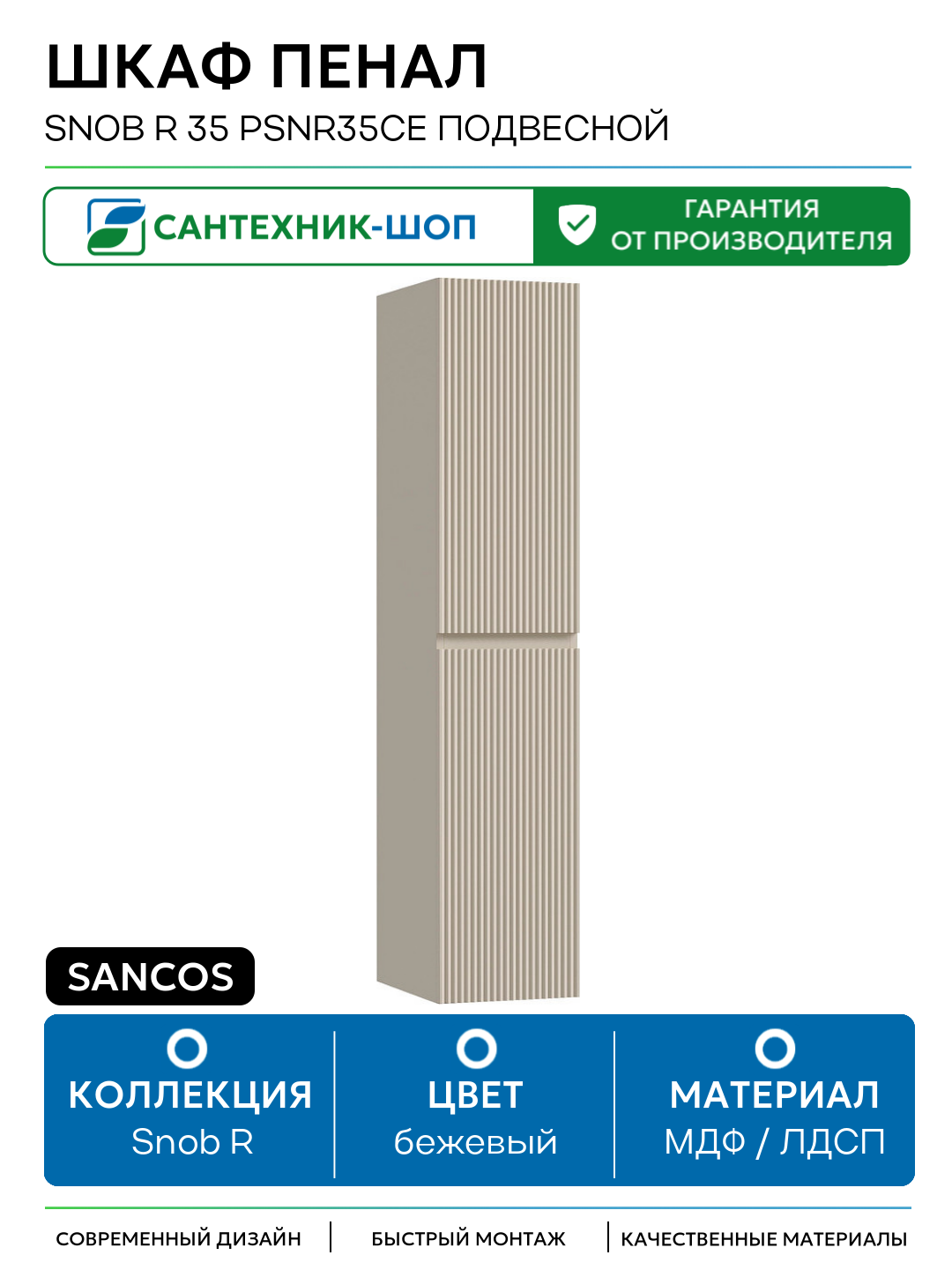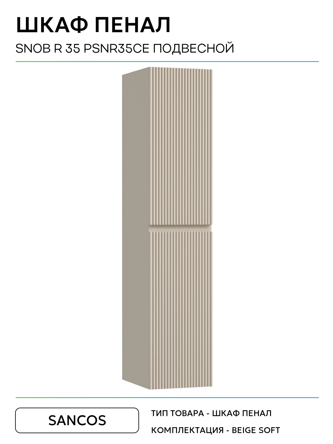 Шкаф пенал Sancos Snob R 35 PSNR35CE подвесной Beige Soft МДФ / ЛДСП бежевый с дверками Италия: сравнение цен, характеристики, фото, актуальное наличие и цены.