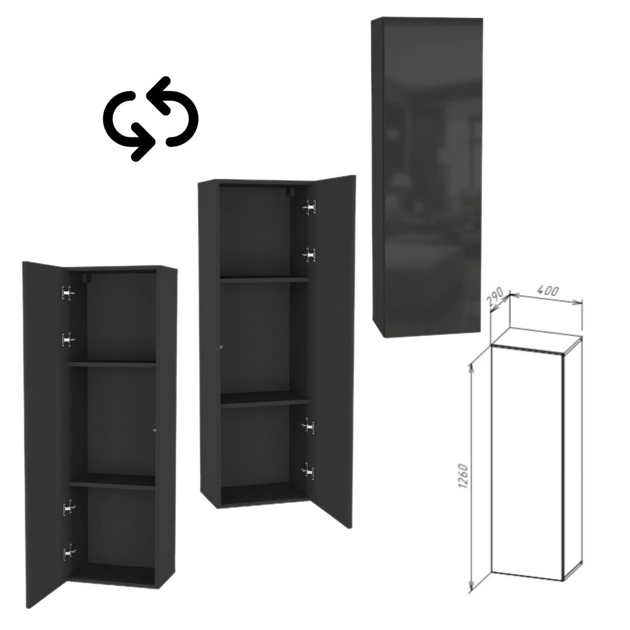 Купить Шкаф пенал, шкаф навесной, POINT 20, Черный/черный глянец, 40х126х29 (ШхВхГ) с доставкой по всей России.