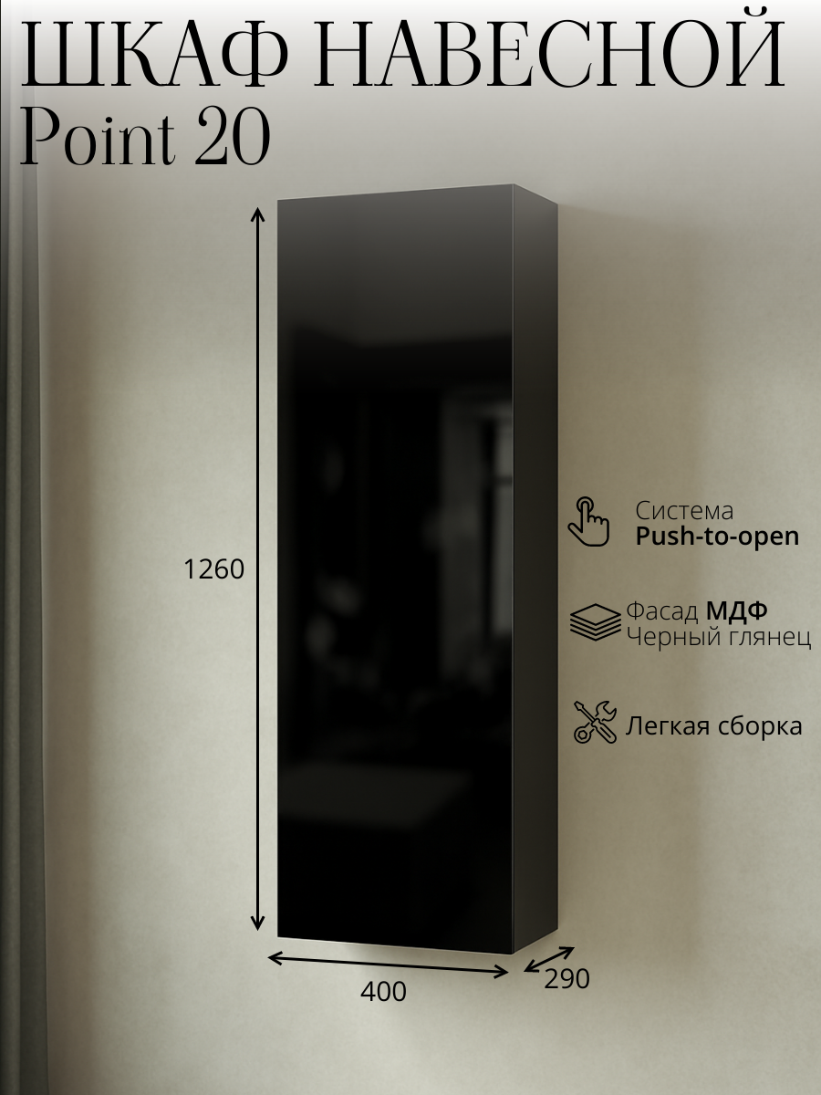 Шкаф пенал, шкаф навесной, POINT 20, Черный/черный глянец, 40х126х29 (ШхВхГ): сравнение цен, характеристики, фото, актуальное наличие и цены.