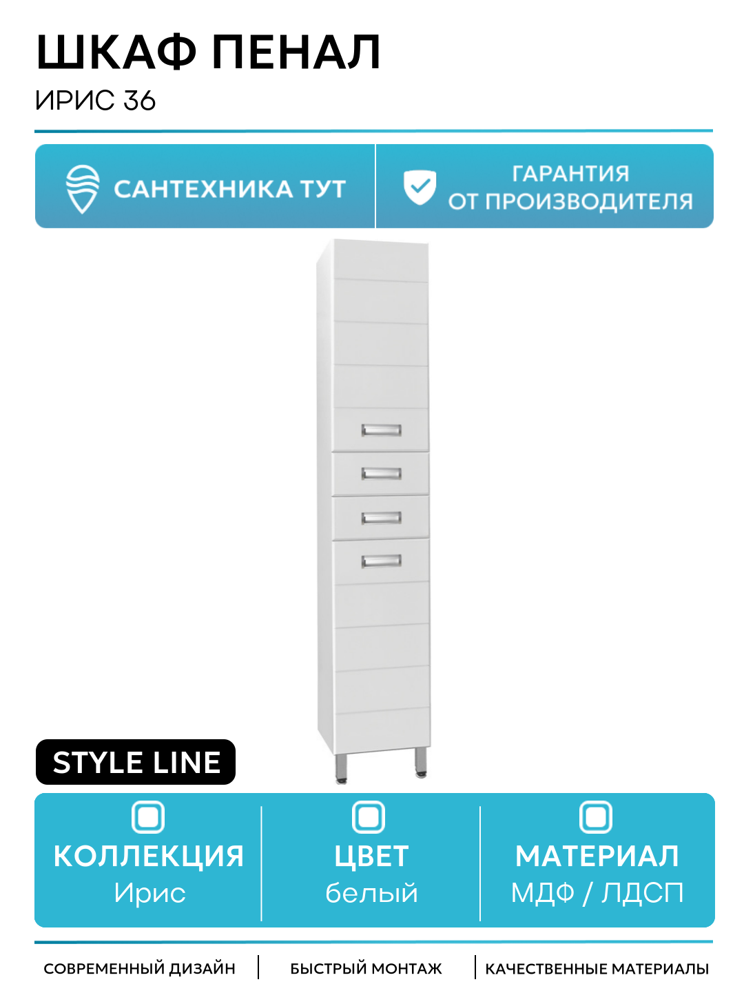 Шкаф пенал Style Line Ирис 36 Белый глянец МДФ / ЛДСП белый с дверками, с ящиками: сравнение цен, характеристики, фото, актуальное наличие и цены.