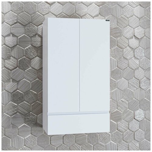 Шкаф для ванной / СанТа / Марс / 50х90х30 см. Влагостойкий шкаф в ванную комнату, это практичный и удобный предмет для хранения. Навесной шкаф для ванной Марс 50*90 выполнен в строгом, современном стиле, имеет раздельное внутреннее пространство, регулируемые по высоте полочки и выдвижной ящик на шариковых направляющих. Такое внутреннее разделение даёт возможность комфортно и доступно распределить косметические принадлежности, сохранить порядок и удобство в использовании. Створки оборудованы петлями с доводчиками для комфортного использования. Шкафчик в ванную самое выгодное приобретение для ванной комнаты, он может стать отличным подарком. Шкафчик для ванной окрашен в белый всегда модный глянцевый цвет, выполнен из влагостойкой ЛДСП и высококачественной МДФ имеющего покрытие на основе высокоглянцевой полиуретановой эмали, что обеспечивает повышенную износостойкость и долговечность.