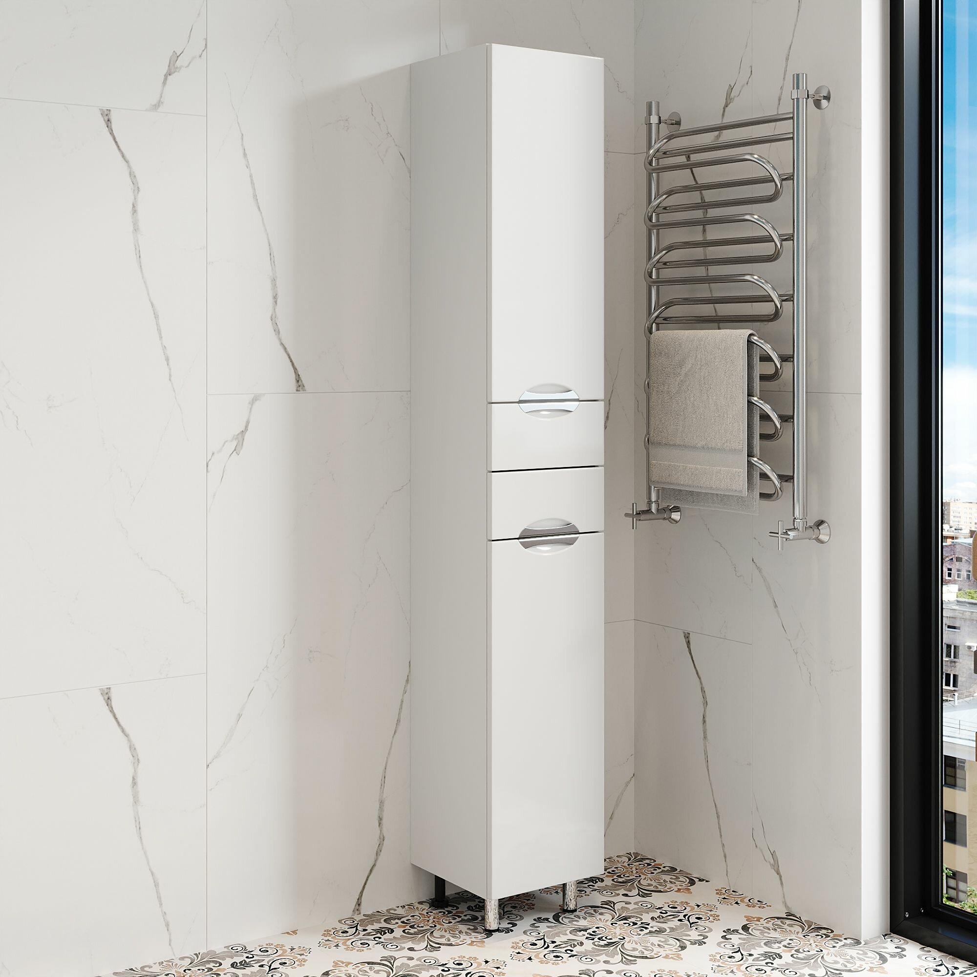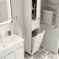 Шкаф полка для ванной комнаты FAURAplus, Люкс (Толедо) 30, напольный, левый, с корзиной, белый, глянцевый.: сравнение цен, характеристики, фото, актуальное наличие и цены.