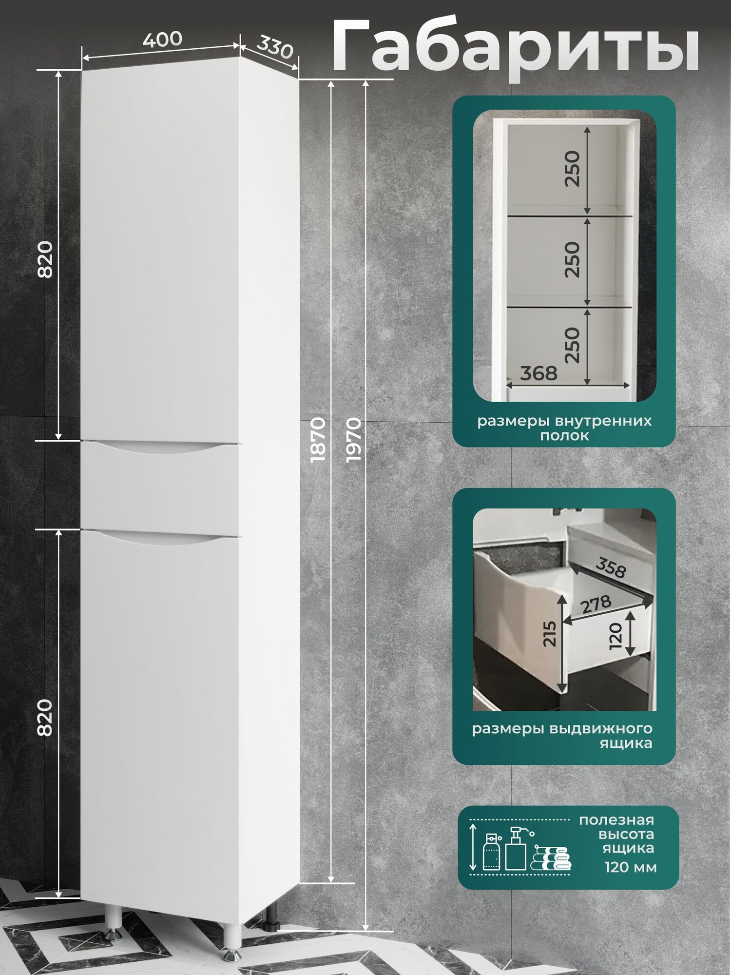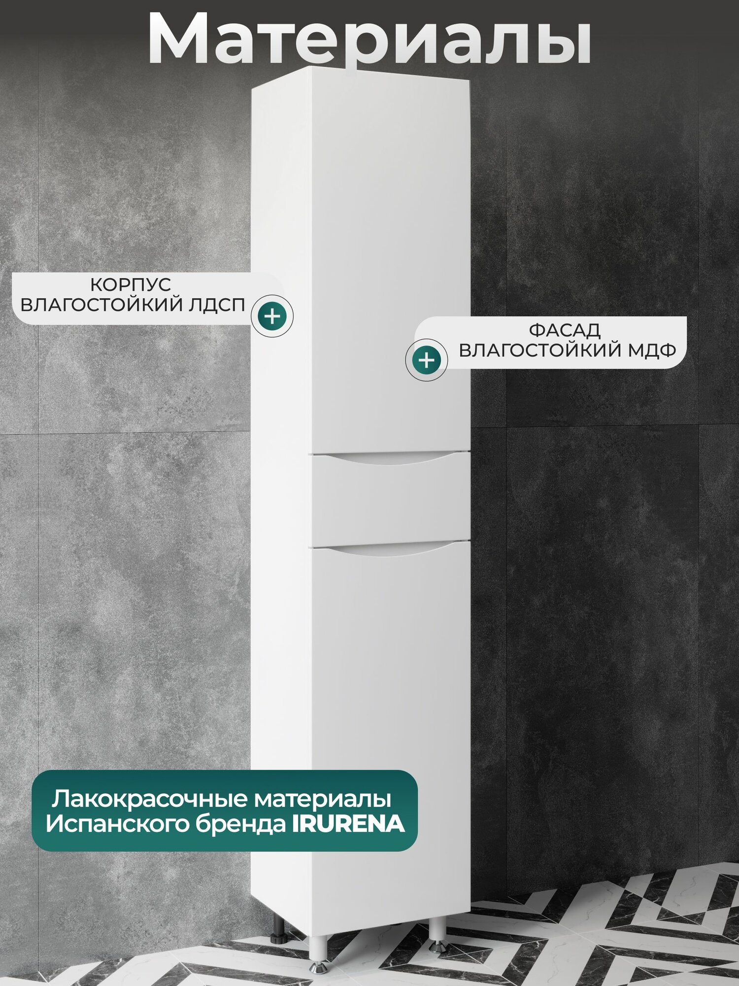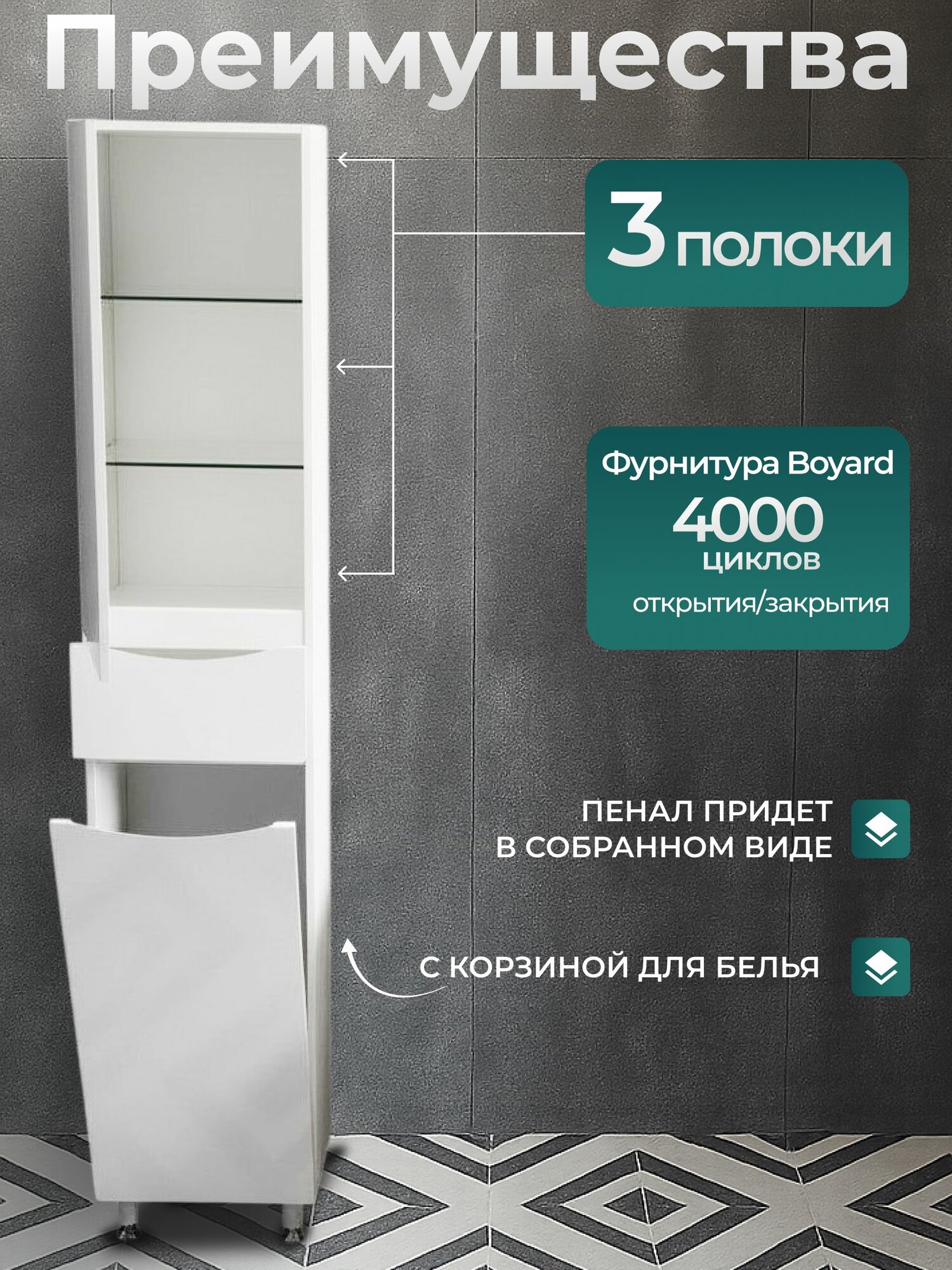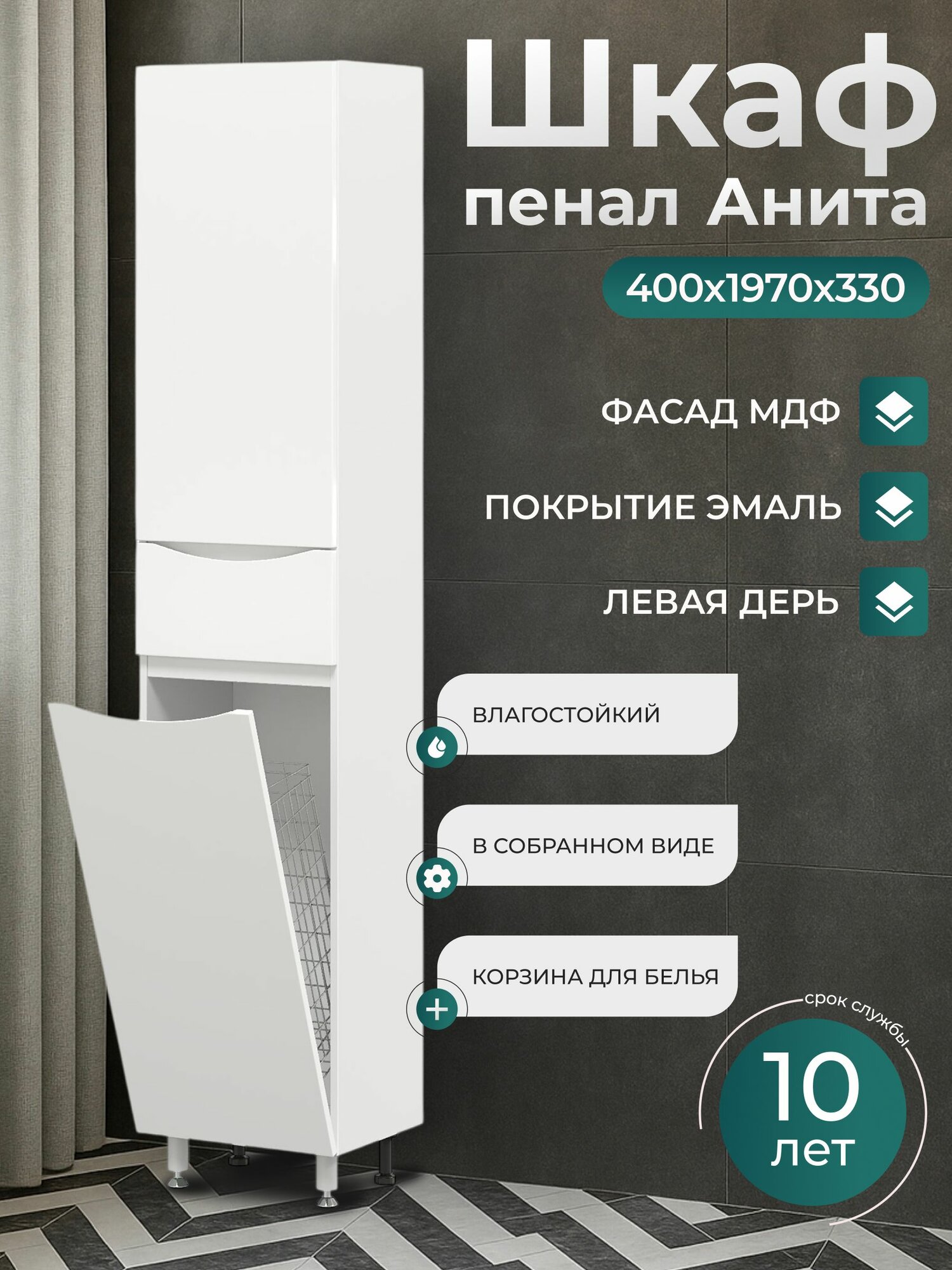 Купить Шкаф для ванной напольный 40 см пенал узкий левый с полками и корзиной с доставкой по всей России.