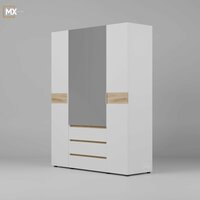 Купить Шкаф распашной четырехдверный Риальто SK1600 Белый/Дуб Вотан ЛДСП, с полками, ящиками, штангами, зеркалом, для спальни, гостиной 1600х2108х510 гросс с доставкой по всей России.