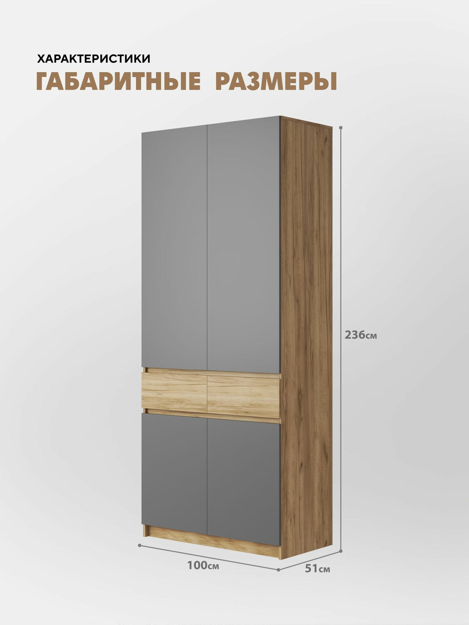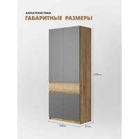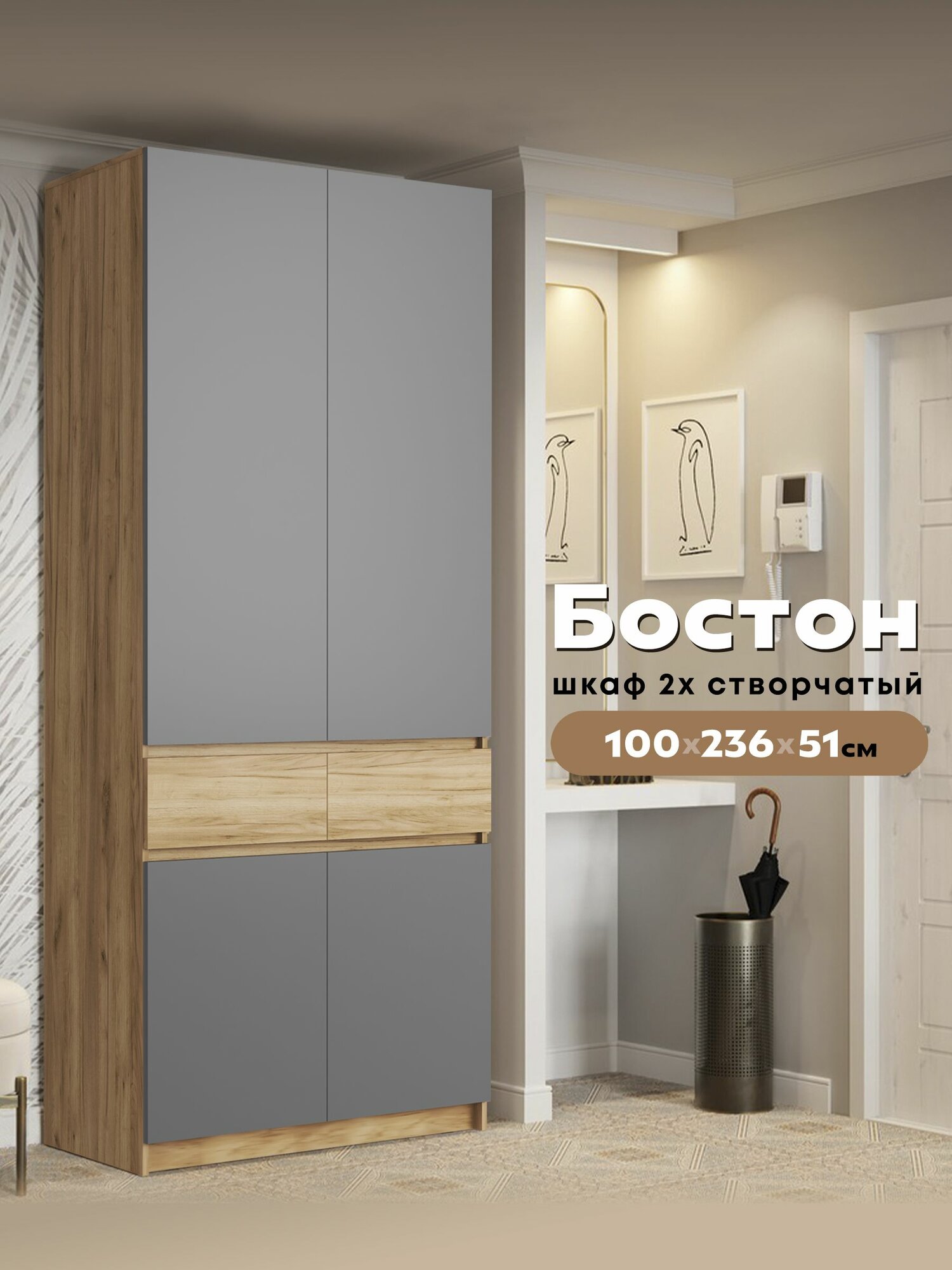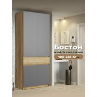 Этот высокий, вместительный и в то же время компактный шкаф-пенал будет великолепно смотреться в тандеме с прихожей Бостон. Помимо объемного отсека под одежду с металлической штангой, в шкафе Бостон ШК-001 предусмотрено два удобных выдвижных ящика на шариковых направляющих, а также четыре полки небольшого размера и большая верхняя полка-антресоль. Преимущества шкафа Бостон ШК-001:• Классический стиль• Несколько цветовых решений на выбор• Функциональный дизайн• Высота шкафа позволяет по максимуму использовать ограниченное пространство квартиры• Возможно комплексное сочетание нескольких шкафов линейки «Бостон» в одну систему хранения.• Шкаф выполнен полностью без ручек, все его элементы открываются за фасадПри изготовлении мебели применяется четырехстороннее кромление открытых деталей, которое надежно защищает от испарений формальдегида – опасного для здоровья человека компонента, без которого пока не может обойтись ни одно мебельное производство. Вес – 107 кгДлина – 1000 ммВысота - 2360 ммГлубина - 510 мм. Материал корпуса – ЛДСП, толщина 16 ммМатериал фасада – ЛДСП+МДФ / ЛДСП+ЛДСП, толщина 16 ммМатериал задней стенки – ХДФ, толщина 3,2 ммЦвет корпуса – Дуб крафт золотойЦвет фасада – ЛДСП Серый шифер + ЛДСП Дуб крафт золотой/ МДФ Глянцевый белый +ЛДСП Дуб крафт золотой