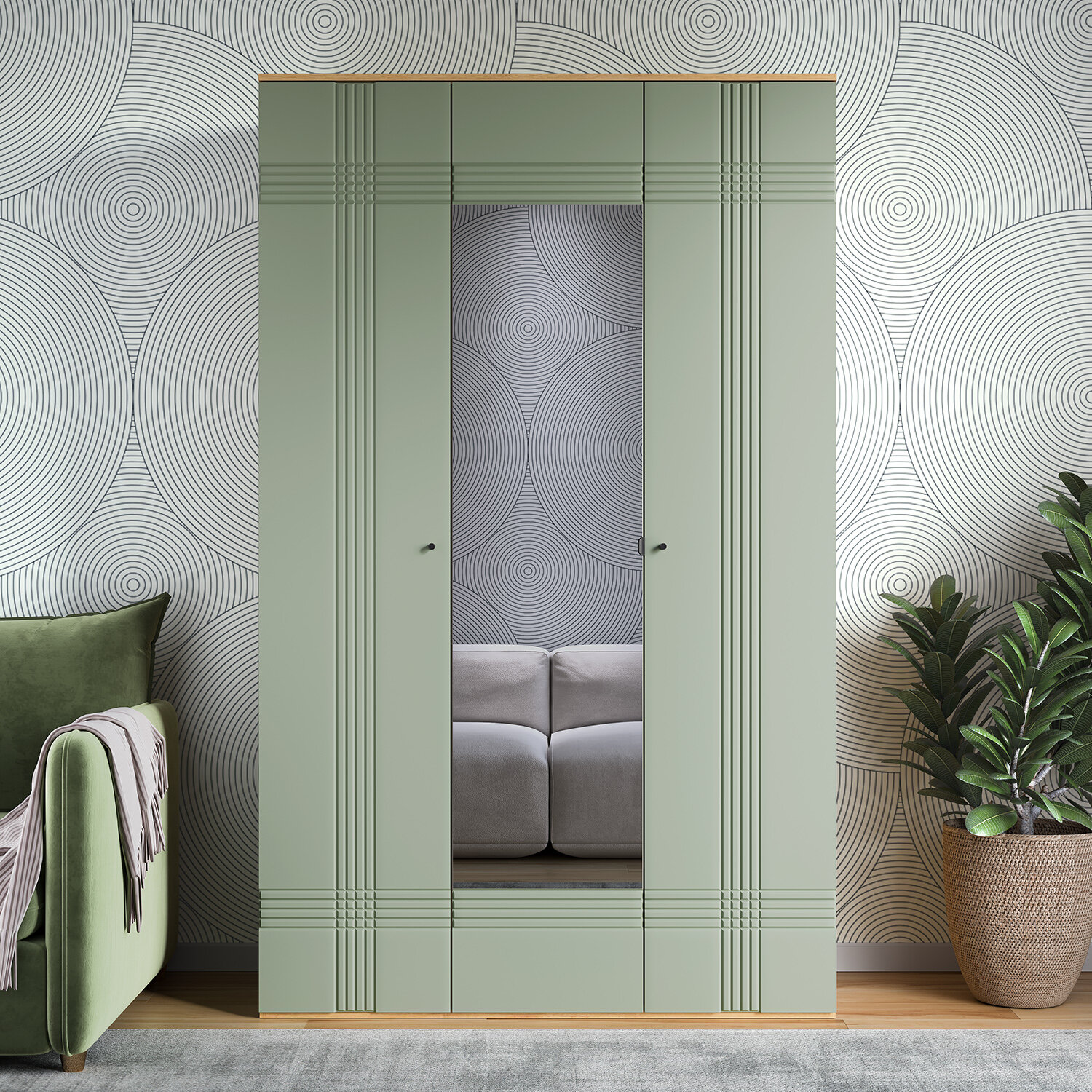 Купить Шкаф распашной Кураж Вега Саксония 135х221,6х57,4 см трехдверный с зеркалом, зеленый с доставкой по всей России.