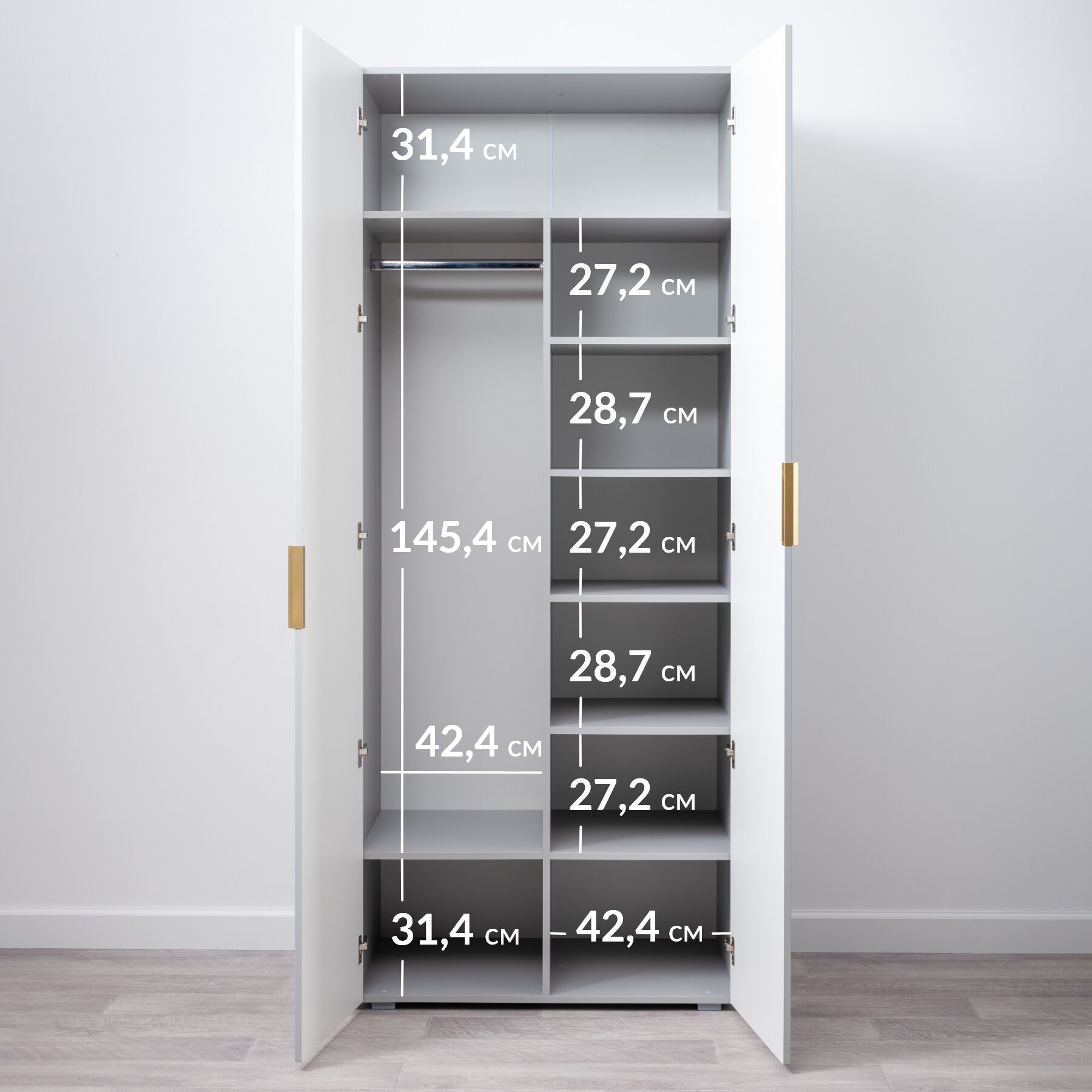Шкаф для спальни Венеция 16.180.02 дополнит Ваш интерьер и поможет организовать порядок в доме. Вместительный серо-бежевый шкафчик оборудован достаточным количеством полок, чтобы сохранять порядок и размещать вещи всей семьи. Штанга для вешалок также необходима для удобного хранения одежды. Она идеально подходит, чтобы повесить рубашки, пиджаки, а также длинные вещи, такие как пальто или платья. Важным элементом большого шкафа для прихожей является просторная верхняя полка. Здесь можно хранить вещи или предметы, которые не используются на повседневной основе. Такой функционал помогает оптимизировать использование пространства в шкафу и в доме в целом. Регулируемые опоры, позволят выровнять высокий распашной шкаф на неровной поверхности. Это обеспечит стабильность и долговечность конструкции. На случай, если Вы заходите разместить два шкафа рядом, в комплекте предусмотрены мебельные стяжки. Итак, вместительная и функциональная стенка с разделением на секции, полками, штангой для вешалок, просторной верхней полкой, регулируемыми опорами и обеспечением безопасности – идеальное решение для семьи любого размера. Выбирая такой шкаф, вы сможете организовать пространство в доме максимально удобным и эффективным образом. Позаботьтесь о комфорте и функциональности Вашего дома, выбрав шкаф из коллекции Венеция, который подарит вам не только вместительность, но и стильное решение для хранения вещей. А также обратите внимание на другие товары из коллекции Венеция, оформите интерьер в едином стиле