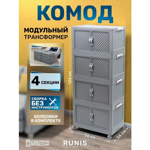 Заголовок для карточки товара: Комод модульный пластиковый RUNIS HOME на колесах | 4-секционный, трансформер, для прихожей, детской, балкона | Сборка без инструментов