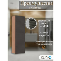 Шкаф с полками навесной RUNO Соренто (одностворчатый) - отличное решение для современного оформления Вашего дома. Рифленые фасады с горизонтальным расположением волны, визуально «оживляют» и «приводят в движение» всю обстановку комнаты, сохраняя при этом умиротворение и покой. Шкафчик навесной выполнен в модных цветах крафтовый дуб (корпус) и цвете графит (фасад) и гармонично впишется в любой интерьер.