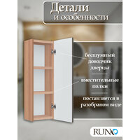 Шкаф навесной отлично впишется в ванную комнату, где Вы сможете его использовать для дополнительного хранения как шкаф навесной для ванной над стиральной машиной или мини шкаф пенал с полками. Можно использовать его и как шкаф в прихожую, где он станет изюминкой Вашего помещения и будет привлекать к себе внимание своим необычным дизайном. Также можно найти применение ему на кухне, где использовать его как мини бар для хранения Вашей коллекции вин или шкаф кухонный навесной для всякой кухонной утвари, привлекая восторженные взгляды Ваших гостей. Возможно, использование шкафа навесного в детской комнате, как книжного шкафа или просто навесного шкафа для всяких мелочей. Конечно же, шкаф навесной можно использовать на балконе или лоджии, любителям цветов он подойдёт для хранения всевозможного инвентаря. Шкаф с полками поможет организовать пространство в разных помещениях Вашего дома, послужит подспорьем в оптимизации пространства и мест для хранения всевозможных вещей. Шкаф поставляется в разобранном виде, в комплект входят: боковины шкафа левая и правая, верхняя и нижняя части шкафа, полки, дверца, задняя стенка шкафа, петли (одна с доводчиком, одна без доводчика), навесы шкафа, набор комплектующих для сборки шкафа, инструкция по сборке. Для изменения стороны открывания, шкаф можно повернуть на 180 градусов. Мебель для ванной RUNO - красота и практичность в мелочах! Цвет товара на мониторе может отличаться от реальных цветов, это зависит от настроек цветового профиля и разрешения Вашего монитора или мобильного устройства.