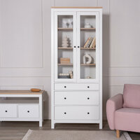 Купить Шкаф с витриной ГУД ЛАКК «сага», 3 ящика, 90х41х216 см, шариковые направляющие с доводчиком, белый/ясень с доставкой по всей России.