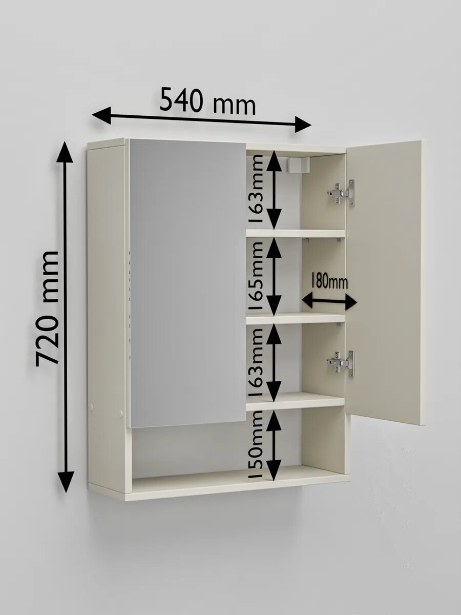Изготавливаясь из высококачественных материалов, шкаф гарантирует долговечность, что особенно важно для ванной комнаты. Продуманное размещение полок позволяет удобно располагать все необходимые вещи, а зеркальная фасадная часть добавляет функциональности, делая каждое утреннее умывание комфортным.