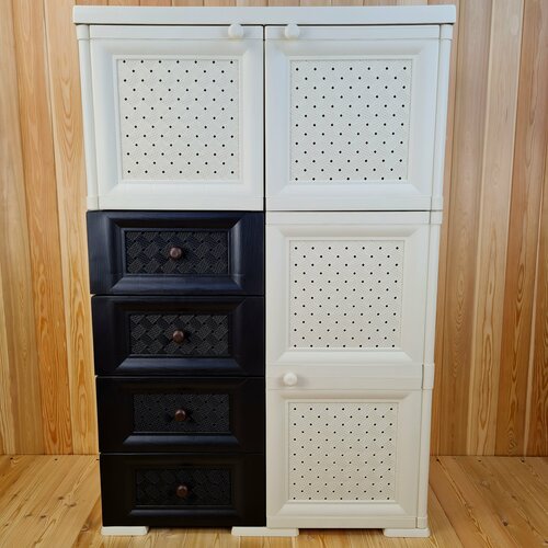 Шкаф широкий, с усиленными рёбрами жёсткости, влагоустойчивый, «УЮТ», 81х42х122,5 h, Цвет: Бежевый с шоколадными ящиками. Арт: Э-130-Б4Ш.