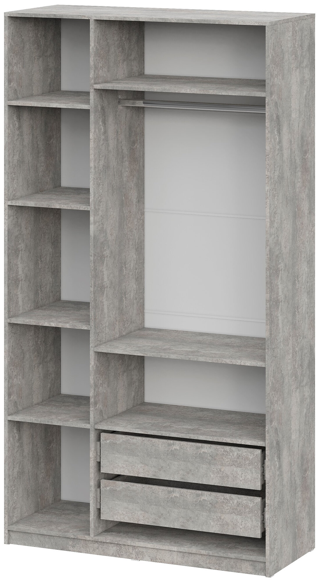 Обращаем внимание, что полки, ящики и антресоль — это дополнительная опция. В базе шкафа идет только 5 полок и штанга, варианты доукомплектовки полками и ящиками преобретаются отдельно.