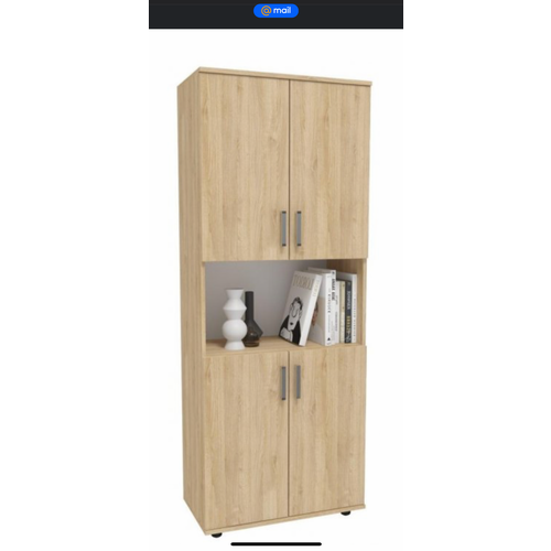 Шкаф-Стелаф для документов Ника: стиль и функциональность. НИКА – это широкий и высокий двустворчатый шкаф, предназначенный для офисного или домашнего использования. Размеры шкафа составляют 204x75x42 см. Шкаф оснащен 5 просторными полочками. Две нижние и две верхние полочки закрываются отдельно, а посередине расположена открытая ниша. Это позволяет удобно разместить все необходимые документы и предметы. Дверцы шкафа изготовлены из ЛДСП дуб сонома /фасады дуб сонома и оснащены стильными металлическими ручками. Это придает шкафу современный и элегантный вид. Конструкция шкафа оснащена прочными силовыми креплениями – эксцентриковыми стяжками, что обеспечивает надежность и долговечность шкафа. Надежная защита торцевых поверхностей шкафа – кромка ПВХ. Это предотвращает сколы и царапины на мебели, а также придает ей аккуратный и законченный вид. Выбирая шкаф для документов Ника, вы получаете стильный, функциональный и надежный элемент мебели, который станет незаменимым помощником в организации вашего рабочего пространства или домашнего уюта. напольный шкаф-стеллаж для документов с одной открытой полкой и полками за распашными дверцами. Цвет Дуб сонома(фасады дуб сонома). Ширина 75 см и глубина 42 см, высота 204см, обеспечивают отличную вместительность. Корпус изготовлен из качественного ЛДСП 16 мм, края стенок отделаны кромкой ПВХ, задняя стенка белая хдф, ручки не пластиковые , кромка на фасадах 19/2мм