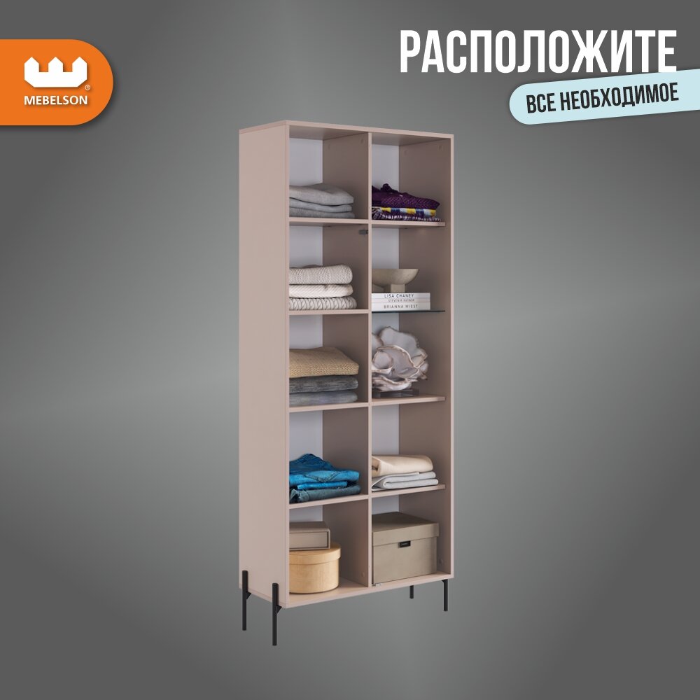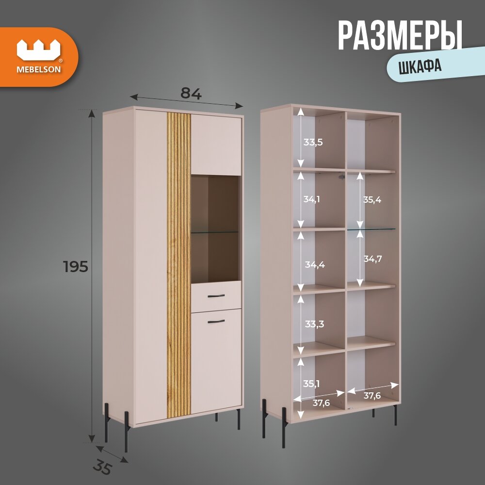 Шкаф (стеллаж-витрина) двухдверный «Доминика» со стеклом, цвет Кашемир/дуб крафт золотой, 84*35*195 см, Mebelson: сравнение цен, характеристики, фото, актуальное наличие и цены.