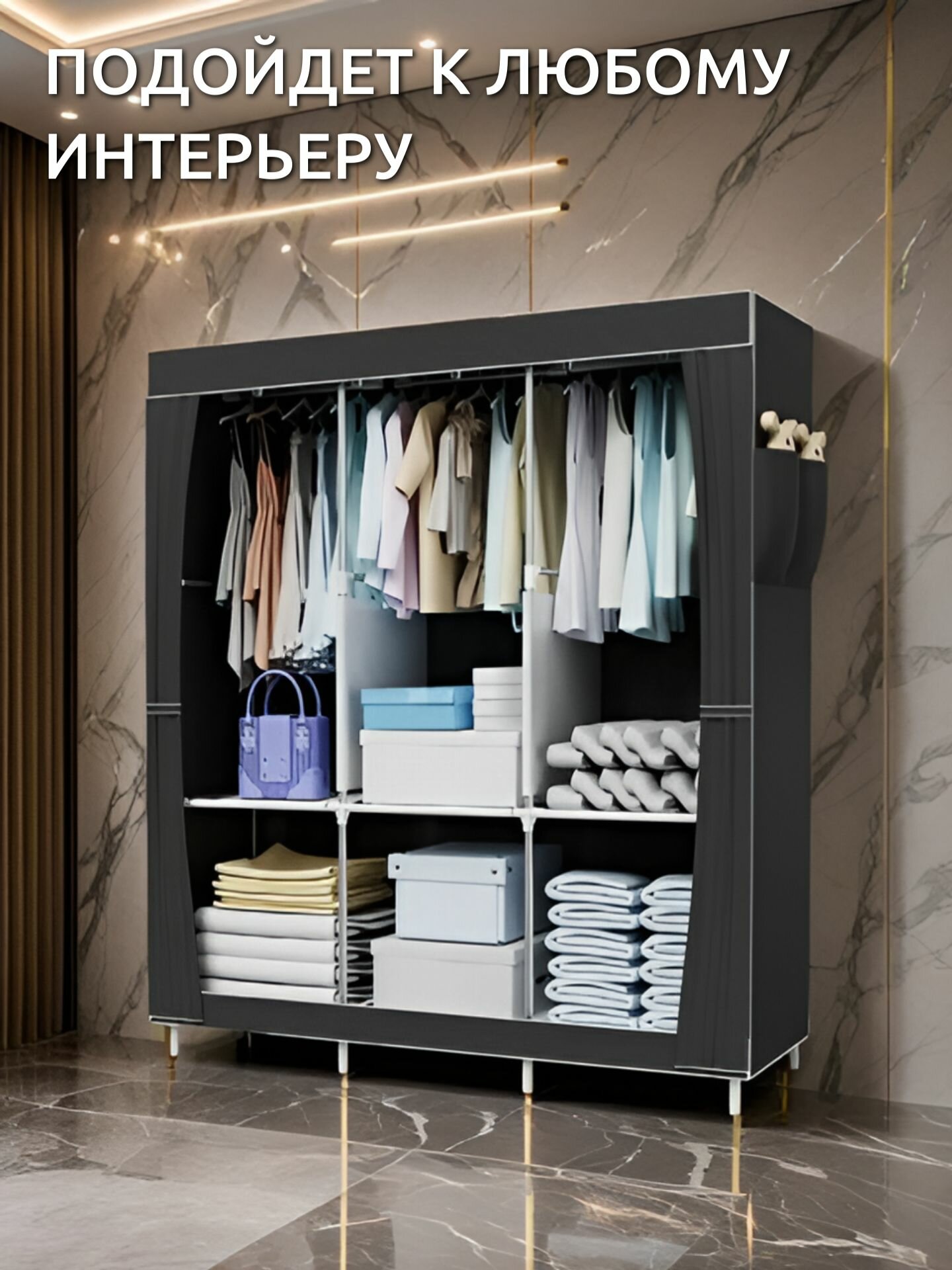 Шкаф имеет 6 полок и 3 штанги. Вы сможете удобно разместить свои вещи, а также менять расположение перегородок. Также текстильный шкаф может использоваться для хранения игрушек, что делает его отличным подарком на новоселье.