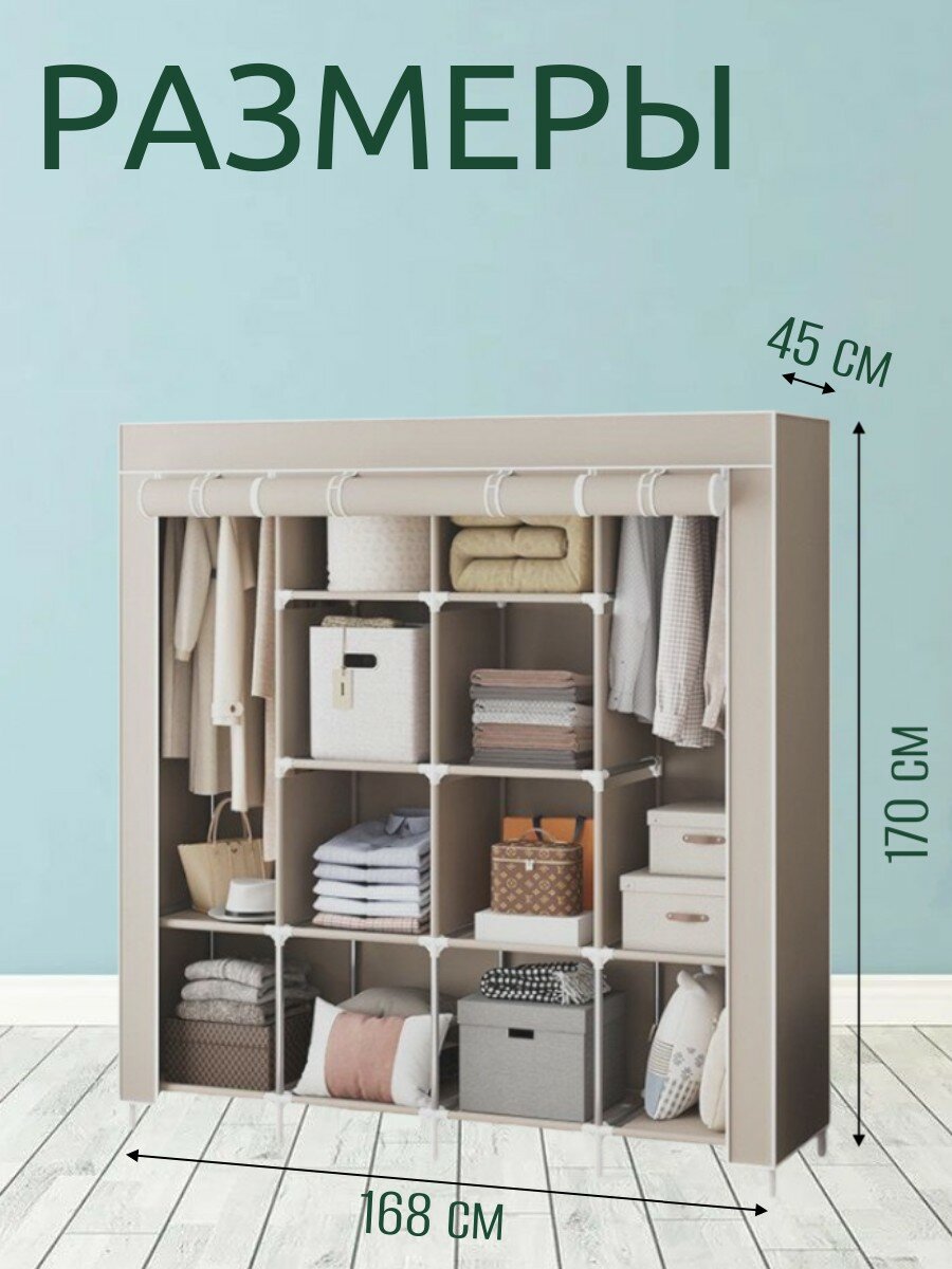 Представляем вашему вниманию тканевый шкаф – идеальное решение для организации хранения одежды и обуви. Он станет неотъемлемой частью вашего интерьера, воплотив в себе гармонию и функциональность. Мебель для прихожей, гостиной или спальни может выглядеть стильно и современно, и наш шкаф – яркий тому пример. Складной стеллаж для вещей удобен в использовании и позволит существенно сэкономить пространство. Кроме того, наш временный шкаф пенал напольный отлично впишется в любой уголок вашего дома – его можно разместить даже на балконе. Не забывайте про преимущества тряпичных бюджетных шкафов для хранения одежды, которые сочетают в себе качество и доступную цену. Он отличается прочностью, а также легкостью в перемещении. Шифоньер бельевой для одежды завершит ваш интерьер, гардеробная система напольная обеспечит возможность удобно разместить все вещи. Закрытый распашной шкаф гарантирует защищенность ваших вещей и станет практичным элементом мебели в вашем доме. Маленький шкафчик из ткани будет идеален для детской комнаты и прекрасно подойдет для хранения игрушек. Для хранения вещей, как и для спальни, шкаф платяной поможет сохранить порядок. Большой шкаф для верхней одежды предоставит пространство для любых предметов. Мебель трансформер для дома добавит функциональности вашей квартире. У него двери на молнии, он удобен для временного хранения вещей. Имеет штанги для вешалок, металлический каркас и тряпичный чехол из нетканного полотна. Не упустите возможность приобрести шкаф тканевый для одежды – это ваш шаг к идеальному порядку и комфорту в доме!