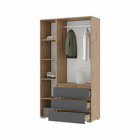 Шкаф трёхстворчатый с полками, со штангой, с ящиками, ЛДСП, цвет- графит/дуб крафт золотой: сравнение цен, характеристики, фото, актуальное наличие и цены.
