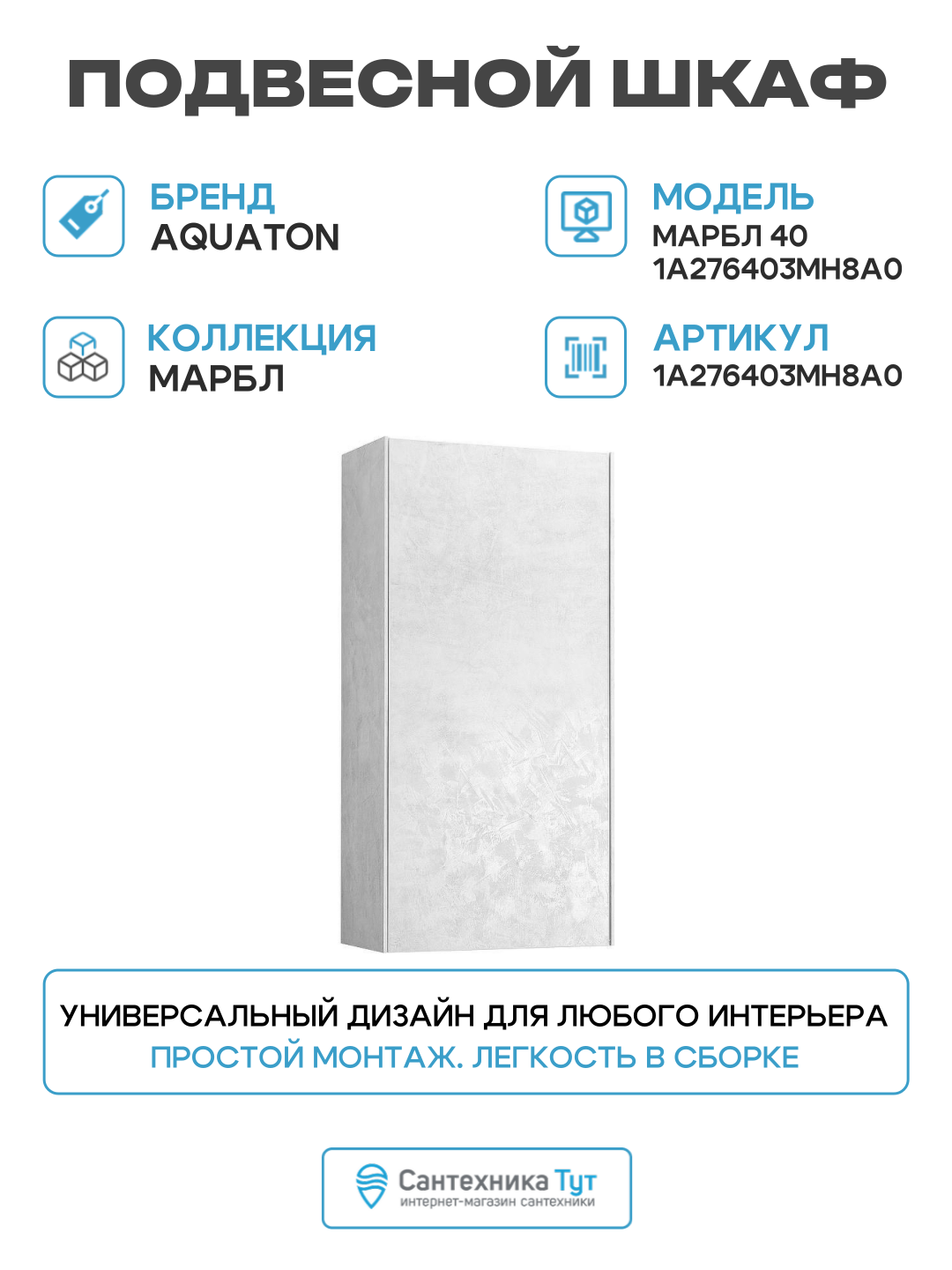 Купить Подвесной шкаф Aquaton Марбл 40 1A276403MH8A0 Слэйт МДФ / ЛДСП серый с дверками Россия с доставкой по всей России. Подвесной шкаф Aquaton Марбл 40 1A276403MH8A0 Слэйт МДФ / ЛДСП серый с дверками Россия: сравнение цен, характеристики, фото, актуальное наличие и цены.
