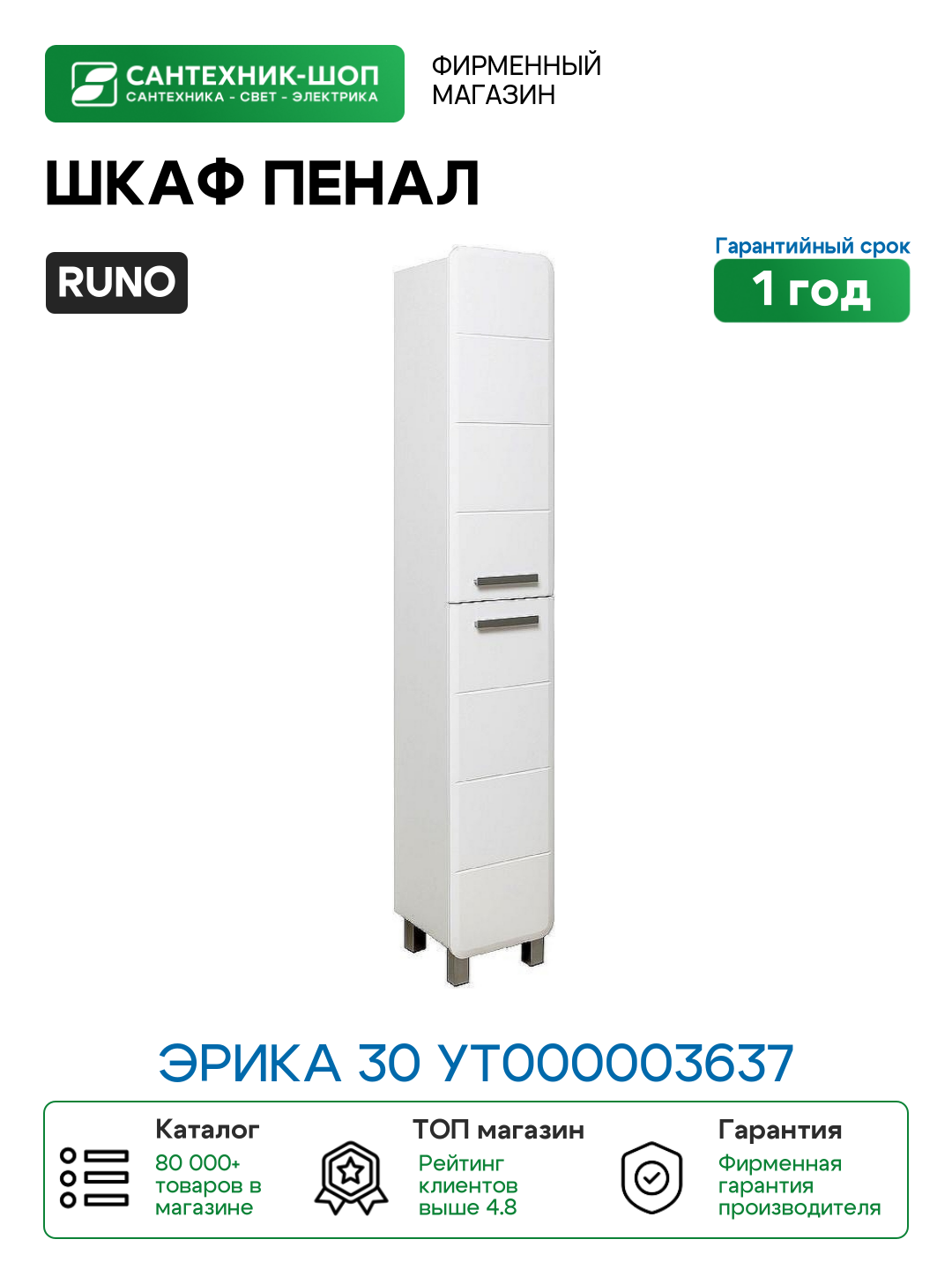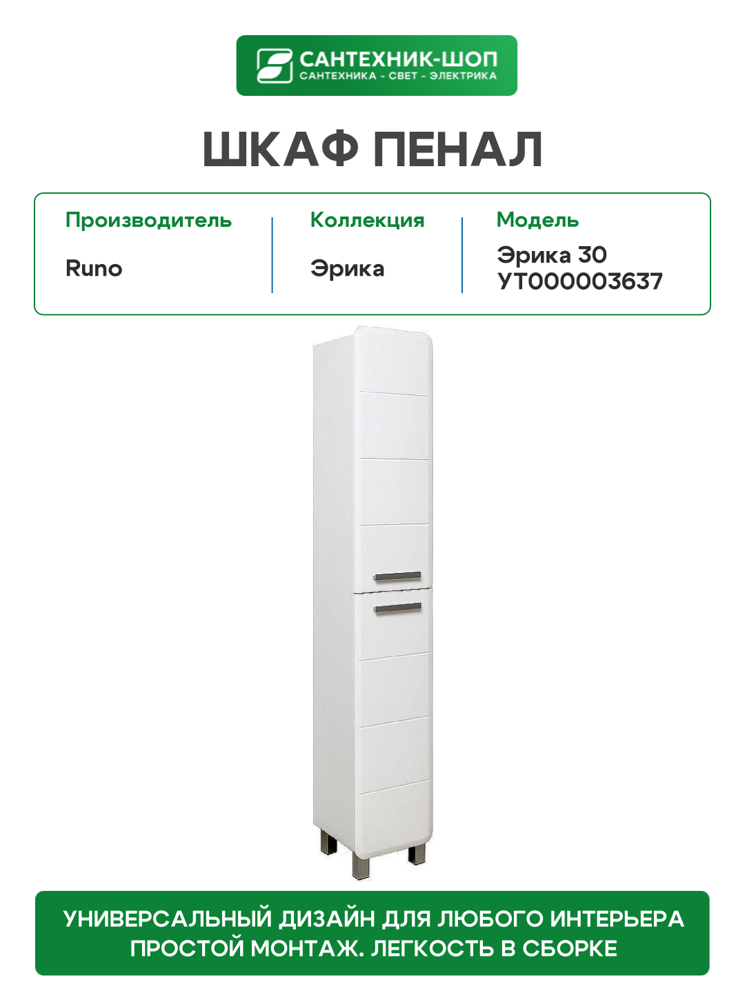 Купить Шкаф пенал Runo Эрика 30 УТ000003637 Белый МДФ / ЛДСП белый с дверками Россия с доставкой по всей России. Шкаф пенал Runo Эрика 30 УТ000003637 Белый МДФ / ЛДСП белый с дверками Россия: сравнение цен, характеристики, фото, актуальное наличие и цены.