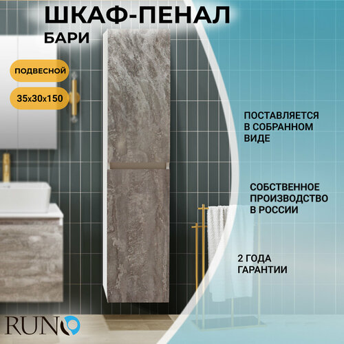 Шкаф пенал для ванной комнаты RUNO Бари (подвесной) - безупречное сочетание модных тенденций с классическим оформлением ванной комнаты. Шкаф в ванную комнату оснащён двумя распашными дверцами, в нижнем и верхнем отделениях по одной встроенной полке. Цвет корпуса классический - белый, при этом цвет фасада в модном цвете – железный камень, идеально впишутся в любой интерьер ванной комнаты. Каждая дверца укомплектована двумя петлями, верхняя с доводчиком, нижняя без доводчика. Мебель для ванной RUNO - красота и практичность в мелочах! Цвет товара на мониторе может отличаться от реальных цветов, это зависит от настроек цветового профиля и разрешения Вашего монитора или мобильного устройства.