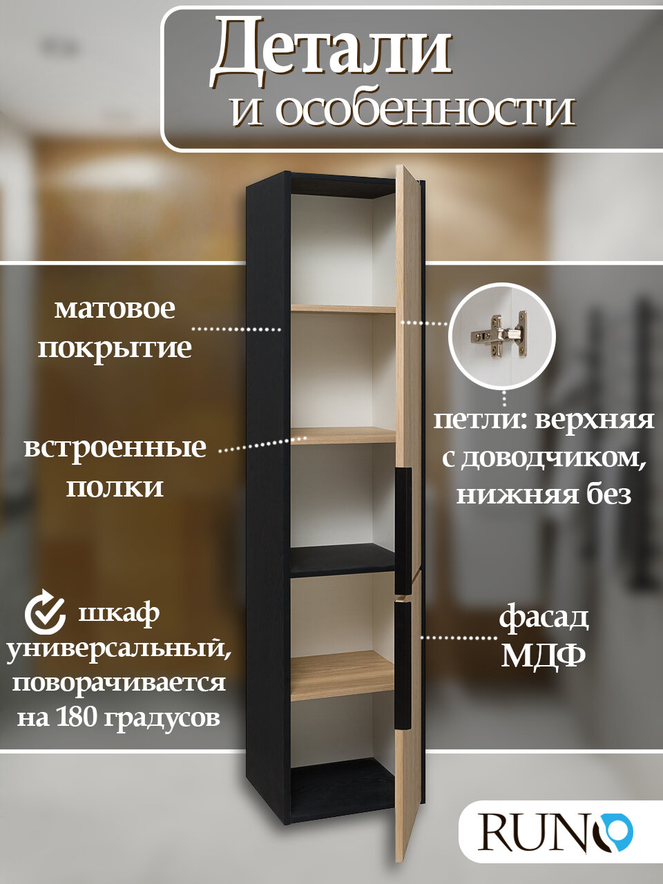 Купить Шкаф в ванную пенал подвесной Runo Мальта, дуб черный, универсальный с доставкой по всей России. Шкаф в ванную пенал подвесной Runo Мальта, дуб черный, универсальный: сравнение цен, характеристики, фото, актуальное наличие и цены.