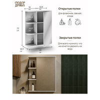 Имеет наружные полки, Крепление к стене, Прямой, Регулируемые по высоте полки, С зеркалом, С полками, Съемные полки