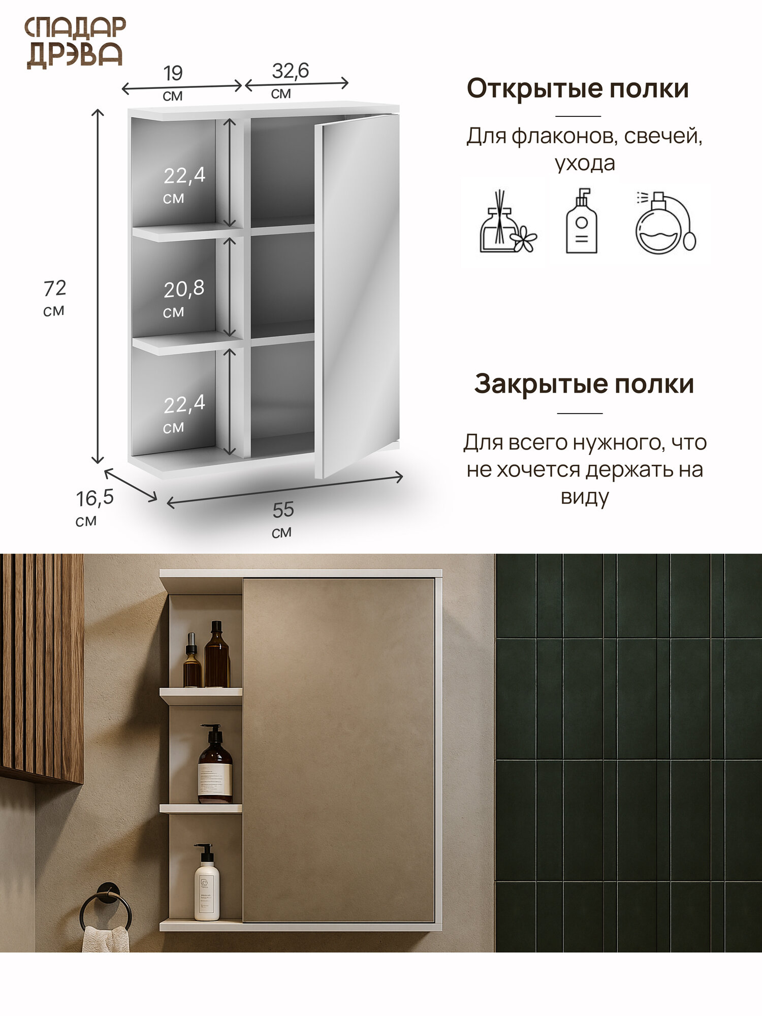 Купить Шкаф в ванную с зеркалом навесной, СпадарДрэва, мебель для ванной комнаты, 550х165х720 мм, ЛДСП с доставкой по всей России. Шкаф в ванную с зеркалом навесной, СпадарДрэва, мебель для ванной комнаты, 550х165х720 мм, ЛДСП: сравнение цен, характеристики, фото, актуальное наличие и цены.