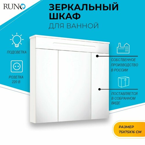 Зеркальный шкаф Runo Парма 75 00000001148 с подсветкой Белый МДФ / ЛДСП белый с дверками Россия: сравнение цен, характеристики, фото, актуальное наличие и цены.