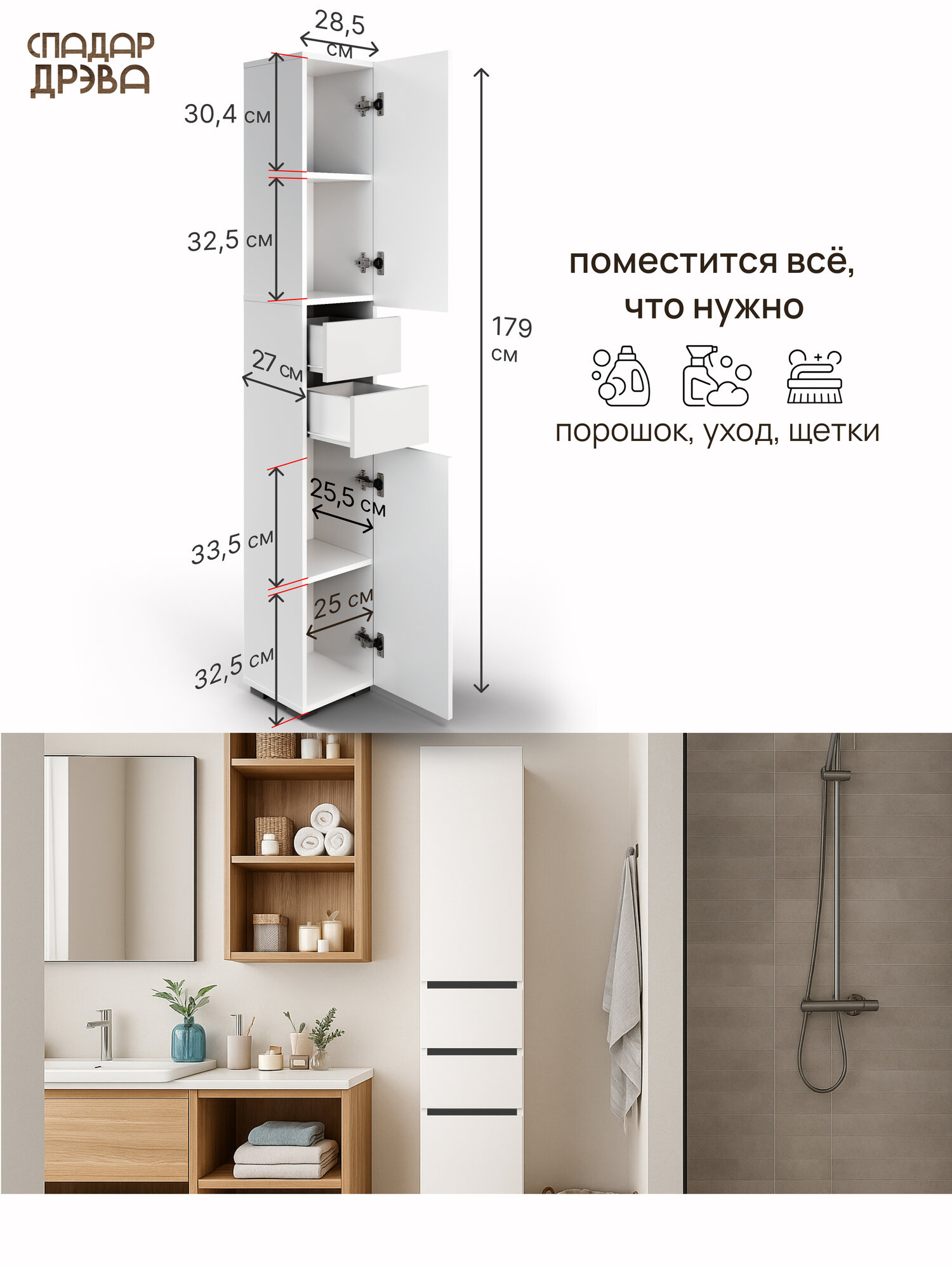 Купить Шкаф пенал в ванную напольный, СпадарДрэва, мебель для ванной комнаты, 285x270x1790 мм, ЛДСП с доставкой по всей России. Шкаф пенал в ванную напольный, СпадарДрэва, мебель для ванной комнаты, 285x270x1790 мм, ЛДСП: сравнение цен, характеристики, фото, актуальное наличие и цены.