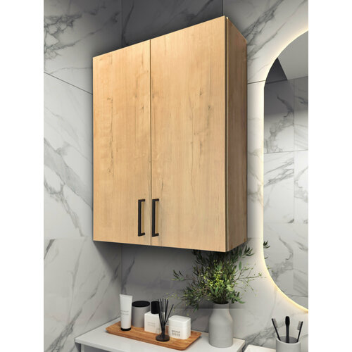 Шкаф в ванную навесной размером 60х74х20 см – это стильный и практичный предмет мебели, который не только дополнит интерьер, но и поможет организовать в ней порядок. Шкаф для ванной комнаты предназначен для хранения косметики, бритвенных принадлежностей, шампуней, гелей и различных аксессуаров для ванны. Его также можно установить как шкаф над стиральной машиной или как шкаф навесной в туалет. Благодаря компактным габаритам шкаф с полками не займет много места в пространстве комнаты и отлично впишется в интерьер даже небольшой ванной комнаты. Шкаф настенный 60 может быть использован как кухонный шкаф для хранения продуктов и посуды. Настенная полка подойдет не только для ванной комнаты, но и для туалета. Корпус и фасады шкафа изготовлены из высококачественной ЛДСП класса Е1, что полностью соответствует международным стандартам ГОСТ по экологическим показателям и безопасна даже для изготовления детской мебели. Для отделки торцов использована кромка ПВХ т. 1 мм, что надежно защитит вашу мебель не только от механических сколов, но и от влаги. Шкаф настенный оснащен качественной фурнитурой с доводчиками для плавного закрывания дверок. Внутри расположены две полки. Полки для хранения с возможностью перестановки по высоте с шагом 6 см позволяют разместить различные хозяйственные средства и эргономично использовать внутреннее пространство. Дверцы шкафа украшены оригинальными ручками черного цвета. Шкаф навесной имеет настенное крепление. Поставляется в разобранном виде. В комплект входит подробная инструкция по сборке и необходимая крепежная фурнитура. Выбирая шкаф VITAMIN, вы получаете стильный, практичный и функциональный элемент мебели, который прослужит вам долгие годы.