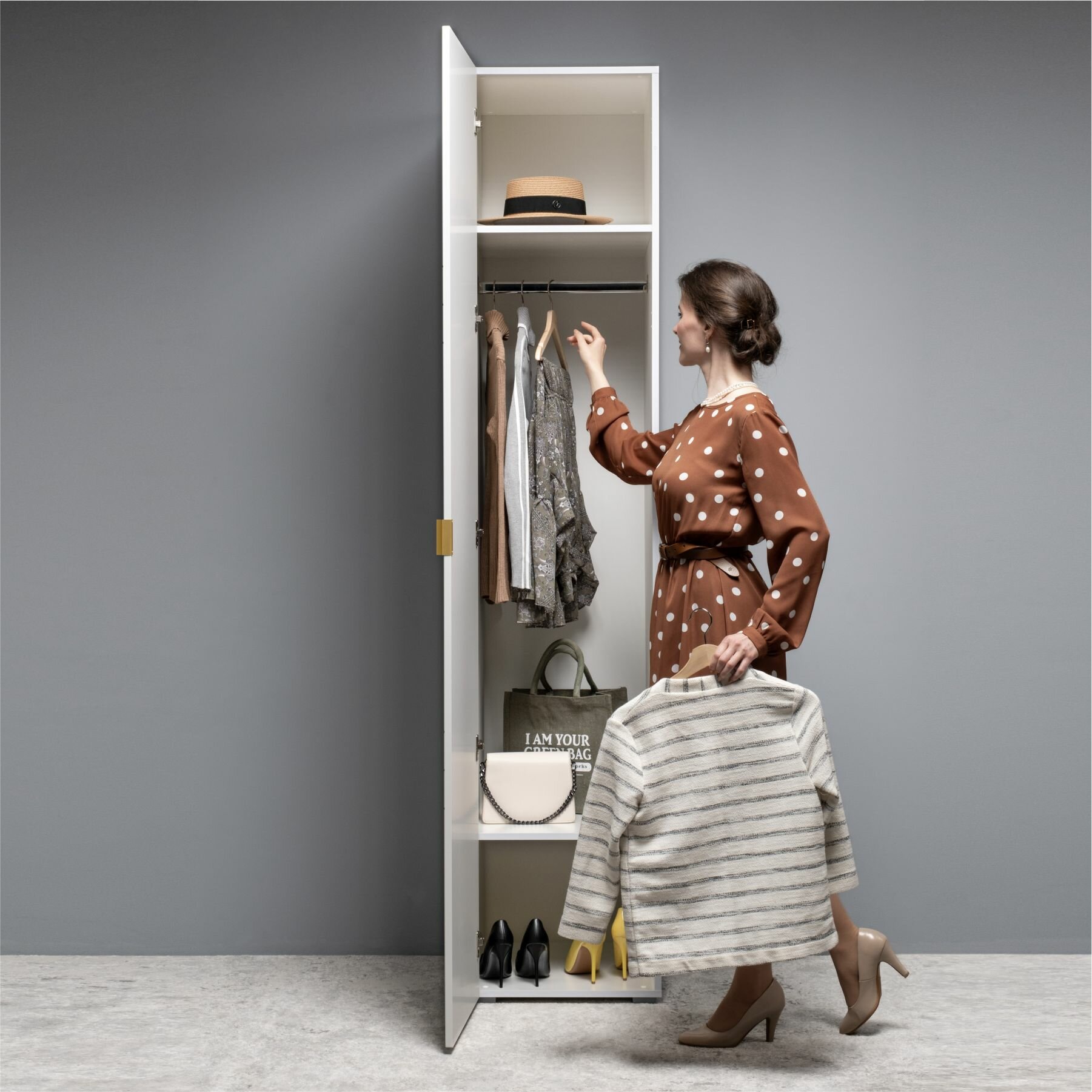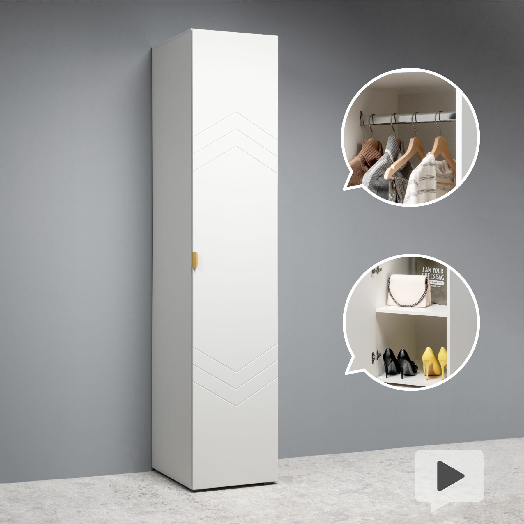 Купить Шкаф пенал узкий для одежды Венеция 16.311 Белый PE шагрень, белая шагрень с доставкой по всей России.