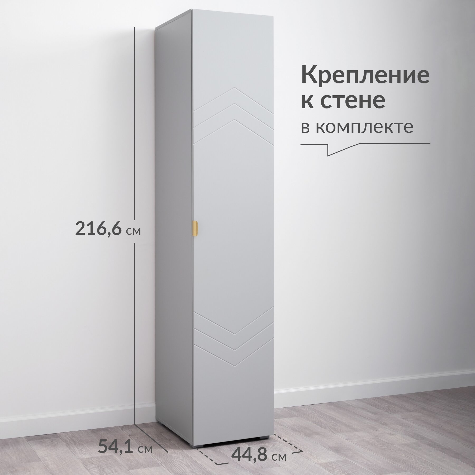 Узкий шкаф для одежды Венеция 16.311 — это воплощение элегантности и функциональности. Его лаконичный дизайн в матовом сером цвете и минималистичная геометрическая фрезеровка фасада из МДФ делают его универсальным решением для любого интерьера: от классического до современного. Этот шкаф пенал белый высокий станет изысканным дополнением вашего дома, не загромождая пространство.