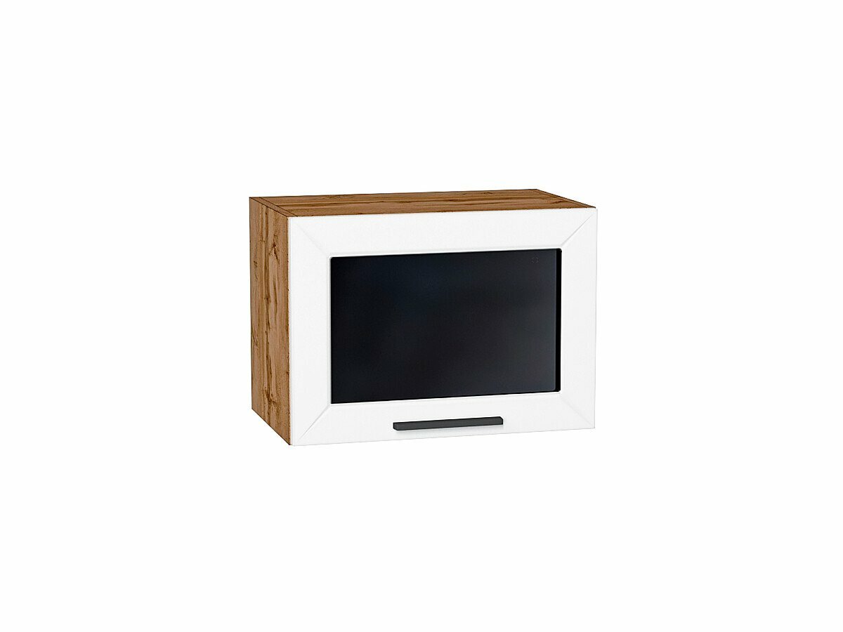 Шкаф верхний горизонтальный остекленный Глетчер, цвет фасада Айленд Силк, цвет каркаса Дуб Вотан, стекло Lacobel «Black», 358*500*318 мм: сравнение цен, характеристики, фото, актуальное наличие и цены.