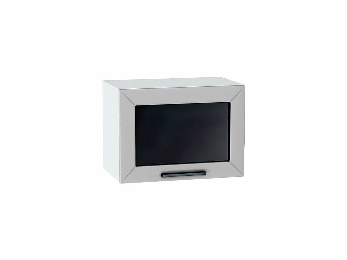 Купить Шкаф верхний горизонтальный остекленный Глетчер, цвет фасада Гейнсборо Силк, цвет каркаса Белый, стекло Lacobel «Black», 358*500*318 мм с доставкой по всей России.