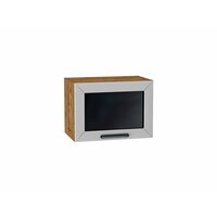 Купить Шкаф верхний горизонтальный остекленный Глетчер, цвет фасада Гейнсборо Силк, цвет каркаса Дуб Вотан, стекло Lacobel «Black», 358*500*318 мм с доставкой по всей России.
