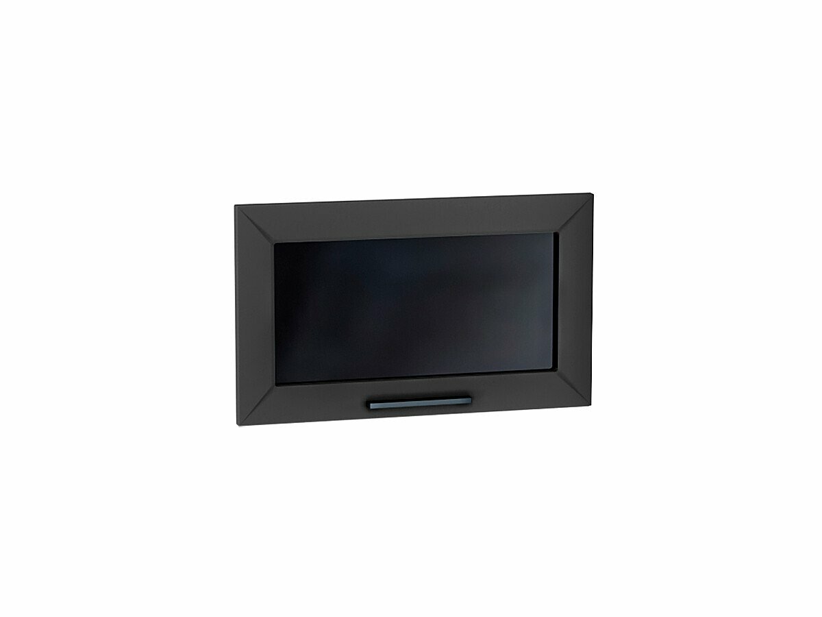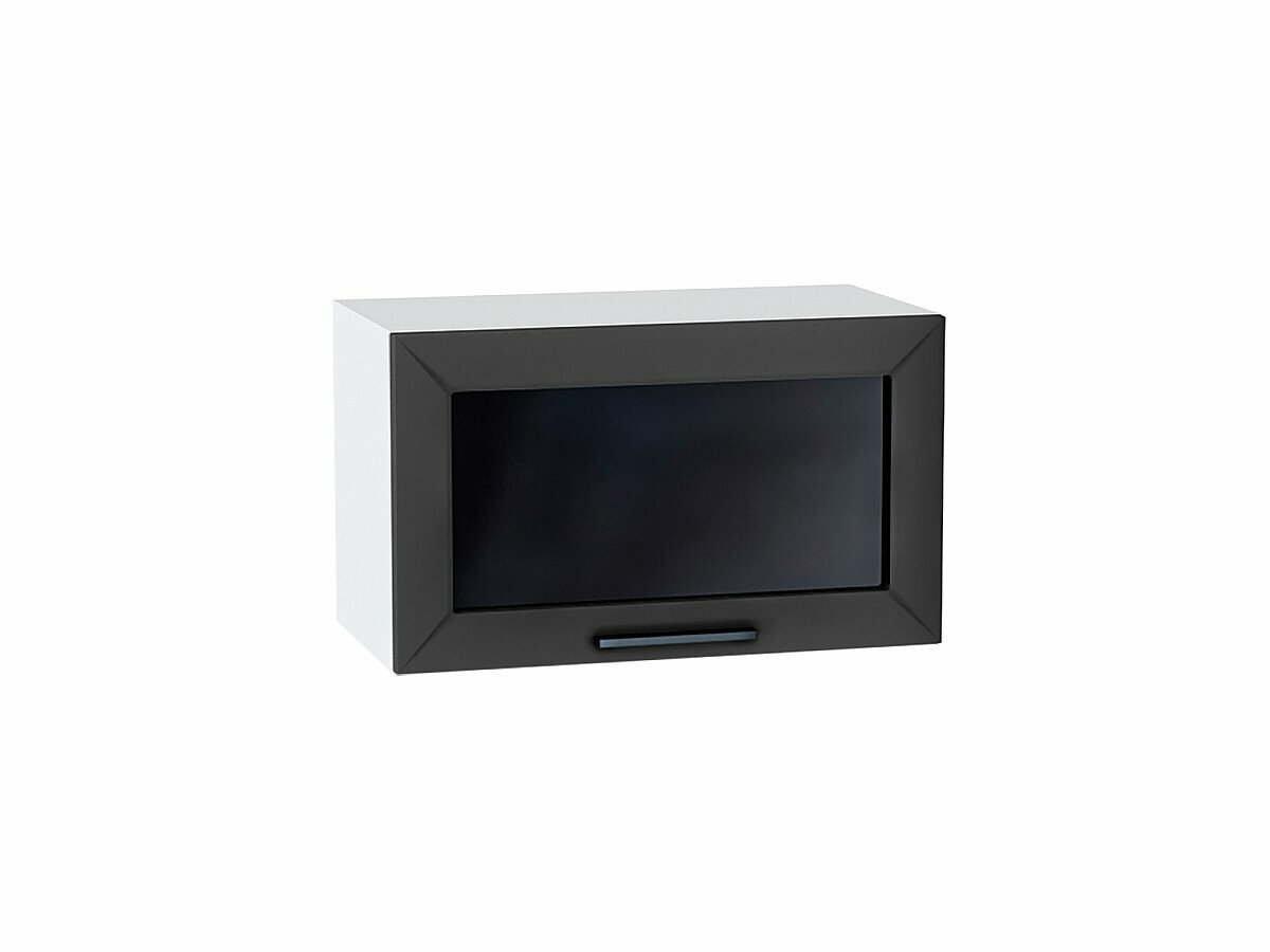 Купить Шкаф верхний горизонтальный остекленный Глетчер, цвет фасада Маренго Силк, цвет каркаса Белый, стекло Lacobel «Black», 358*600*318 мм с доставкой по всей России.