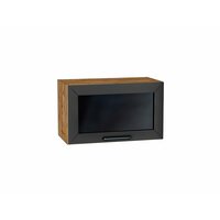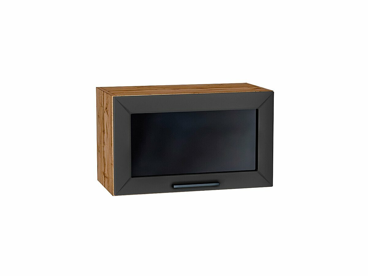 Купить Шкаф верхний горизонтальный остекленный Глетчер, цвет фасада Маренго Силк, цвет каркаса Дуб Вотан, стекло Lacobel «Black», 358*600*318 мм с доставкой по всей России.