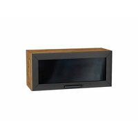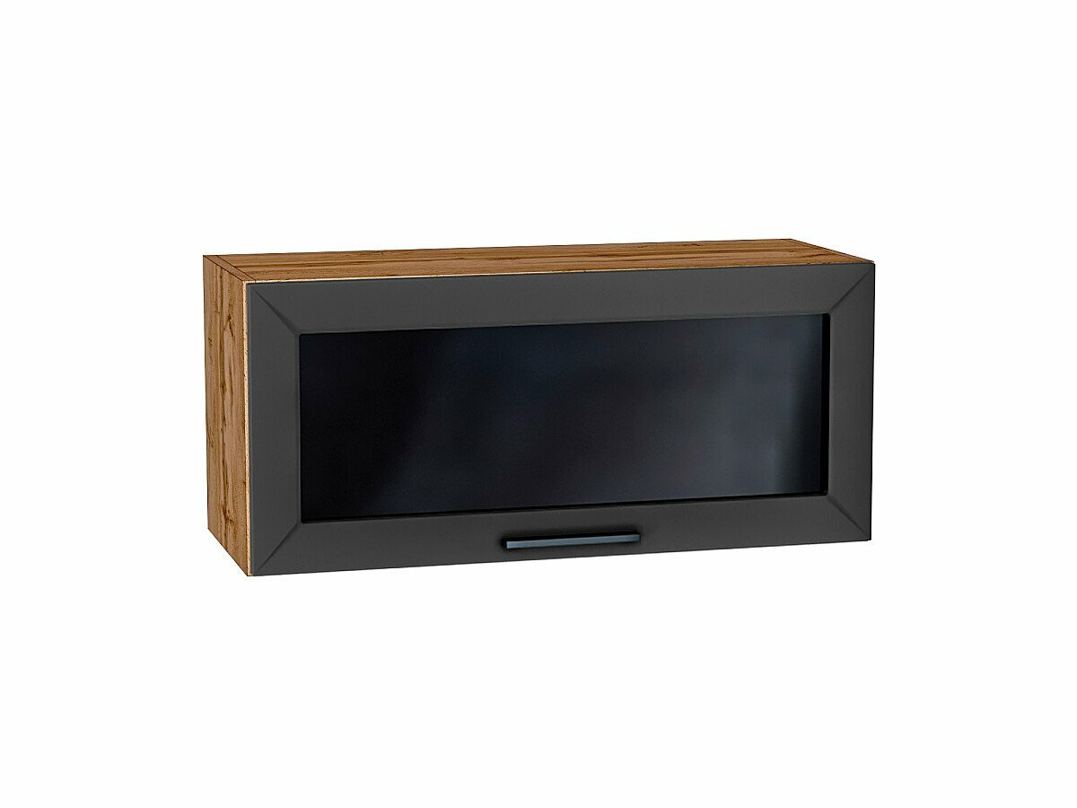 Купить Шкаф верхний горизонтальный остекленный Глетчер, цвет фасада Маренго Силк, цвет каркаса Дуб Вотан, стекло Lacobel «Black», 358*800*318 мм с доставкой по всей России.