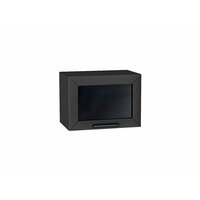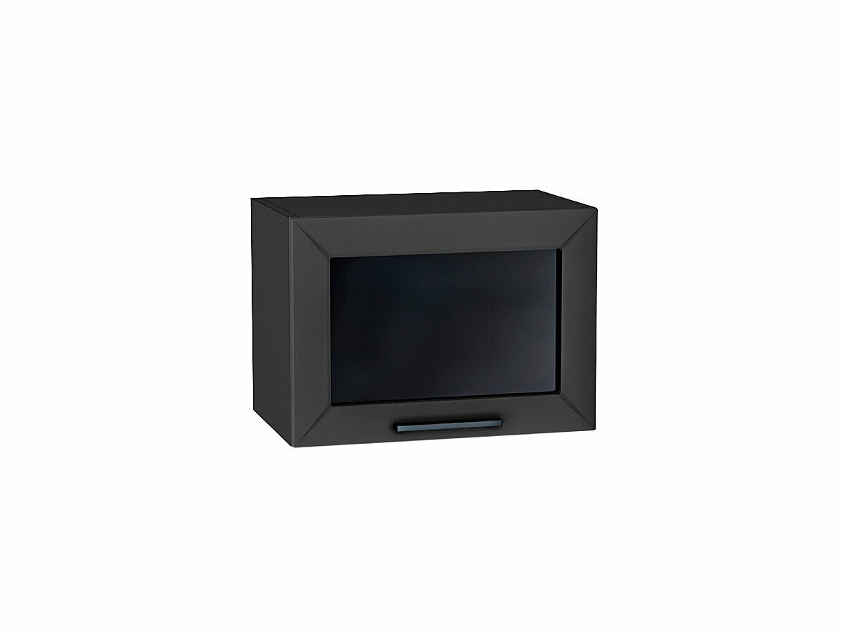 Купить Шкаф верхний горизонтальный остекленный Глетчер, цвет фасада Маренго Силк, цвет каркаса Graphite, стекло Lacobel «Black», 358*500*318 мм с доставкой по всей России.