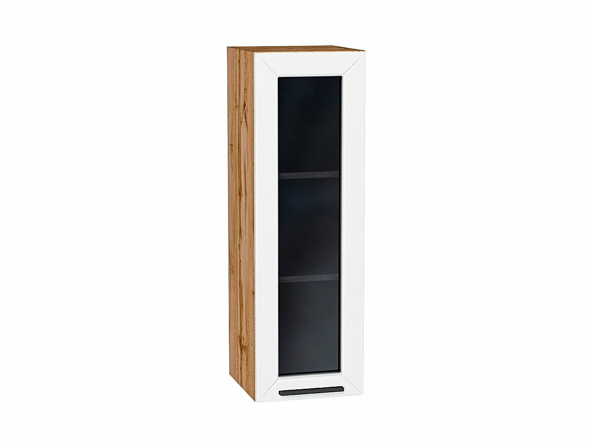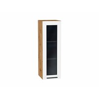 Купить Шкаф верхний с 1-ой остекленной дверцей Глетчер, цвет фасада Айленд Силк, цвет каркаса Дуб Вотан, стекло Lacobel «Black», 920*300*318 мм с доставкой по всей России.