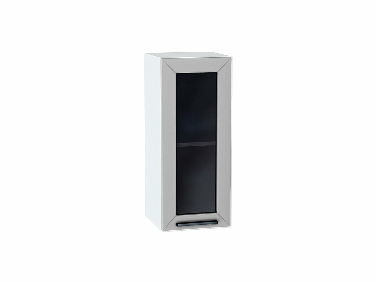 Купить Шкаф верхний с 1-ой остекленной дверцей Глетчер, цвет фасада Гейнсборо Силк, цвет каркаса Белый, стекло Lacobel «Black», 716*300*318 мм с доставкой по всей России.