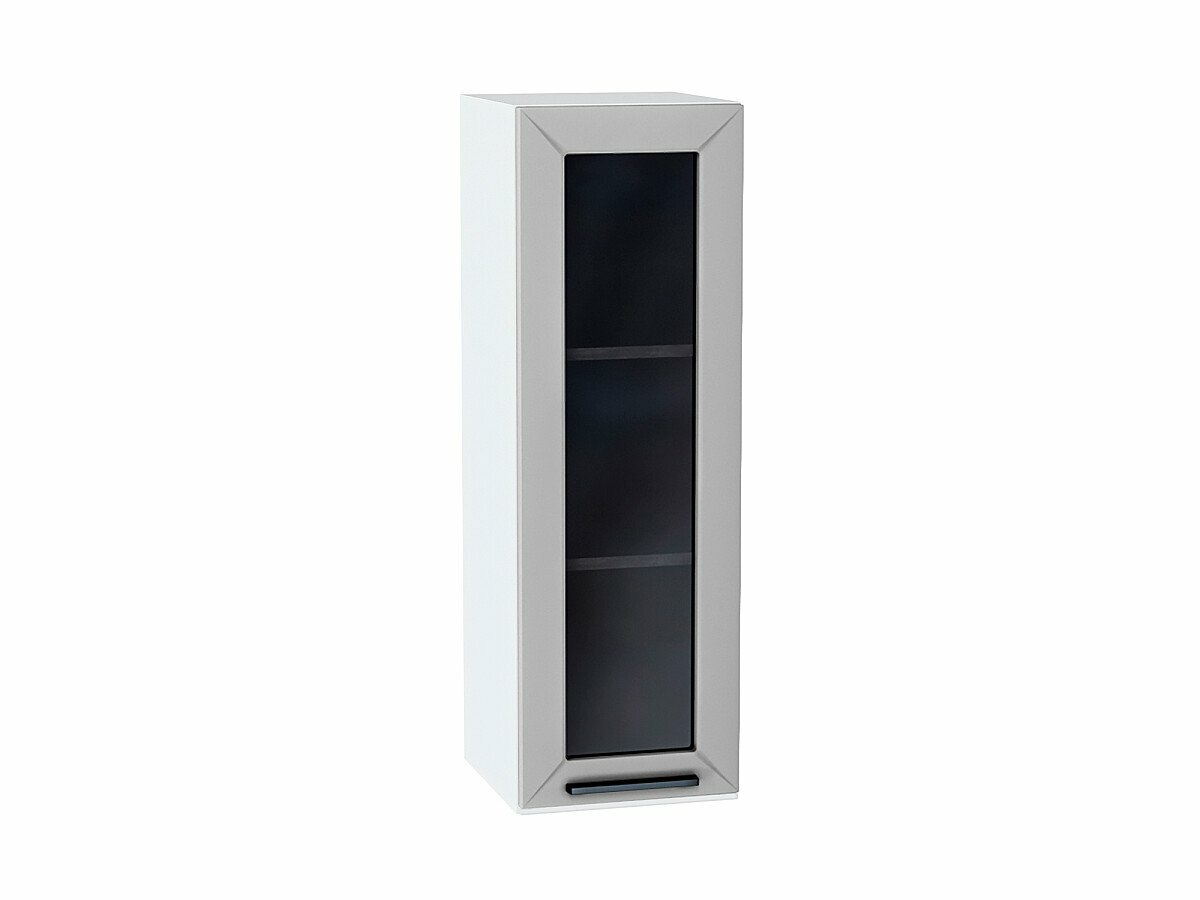 Купить Шкаф верхний с 1-ой остекленной дверцей Глетчер, цвет фасада Гейнсборо Силк, цвет каркаса Белый, стекло Lacobel «Black», 920*300*318 мм с доставкой по всей России.