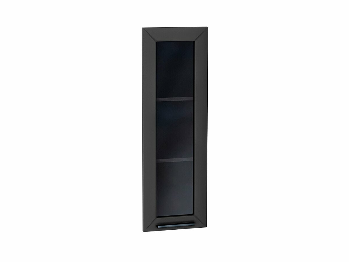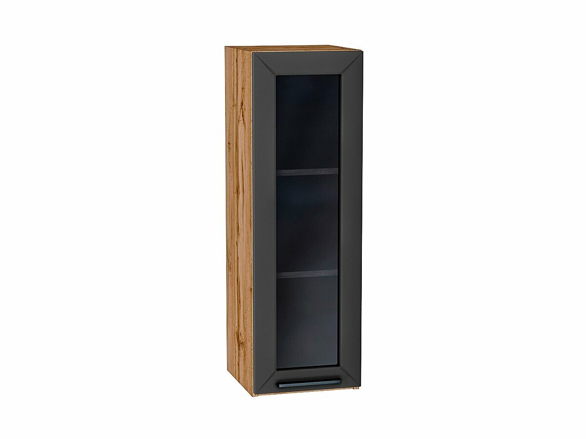 Купить Шкаф верхний с 1-ой остекленной дверцей Глетчер, цвет фасада Маренго Силк, цвет каркаса Дуб Вотан, стекло Lacobel «Black», 920*300*318 мм с доставкой по всей России.