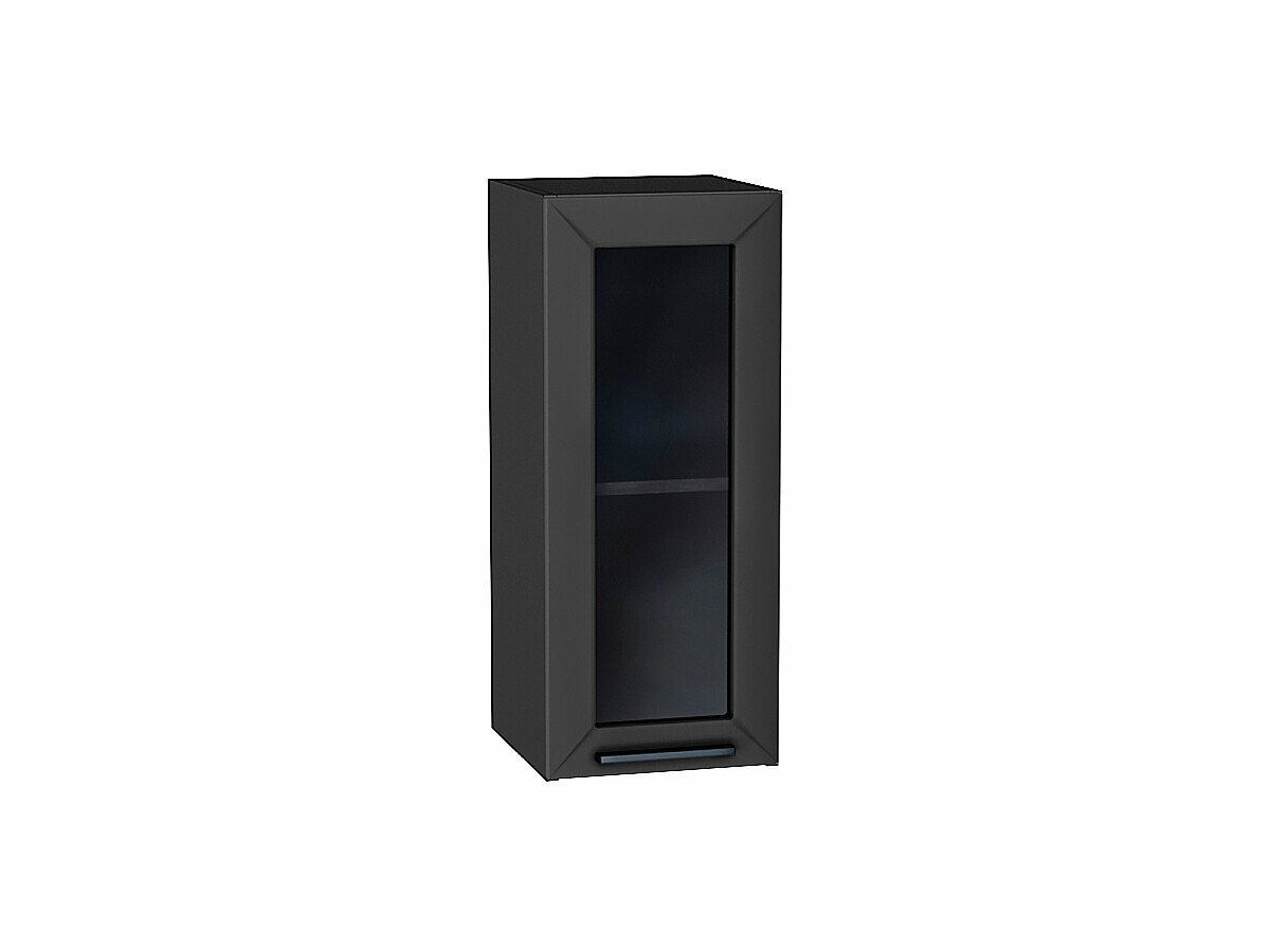 Купить Шкаф верхний с 1-ой остекленной дверцей Глетчер, цвет фасада Маренго Силк, цвет каркаса Graphite, стекло Lacobel «Black», 716*300*318 мм с доставкой по всей России.