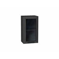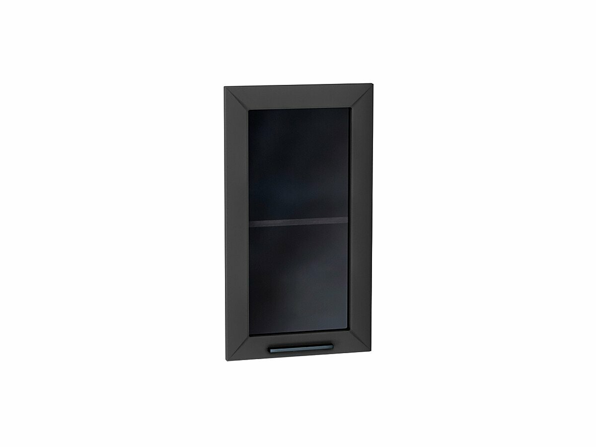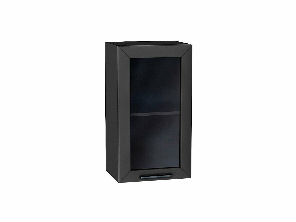 Купить Шкаф верхний с 1-ой остекленной дверцей Глетчер, цвет фасада Маренго Силк, цвет каркаса Graphite, стекло Lacobel «Black», 716*400*318 мм с доставкой по всей России.