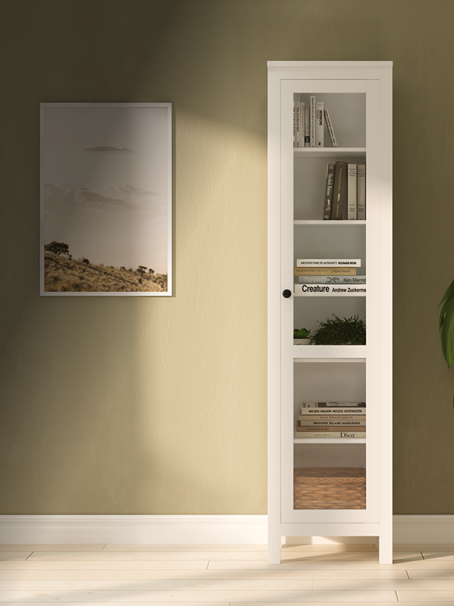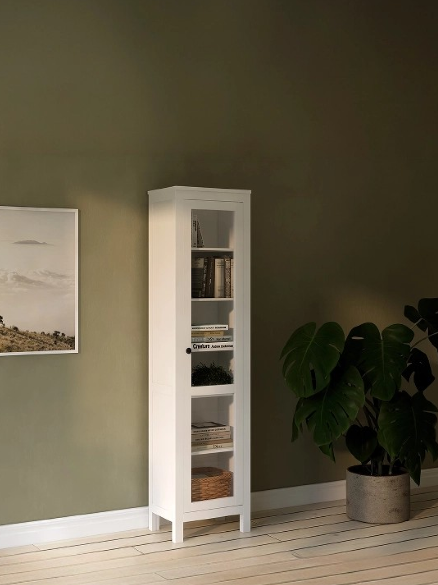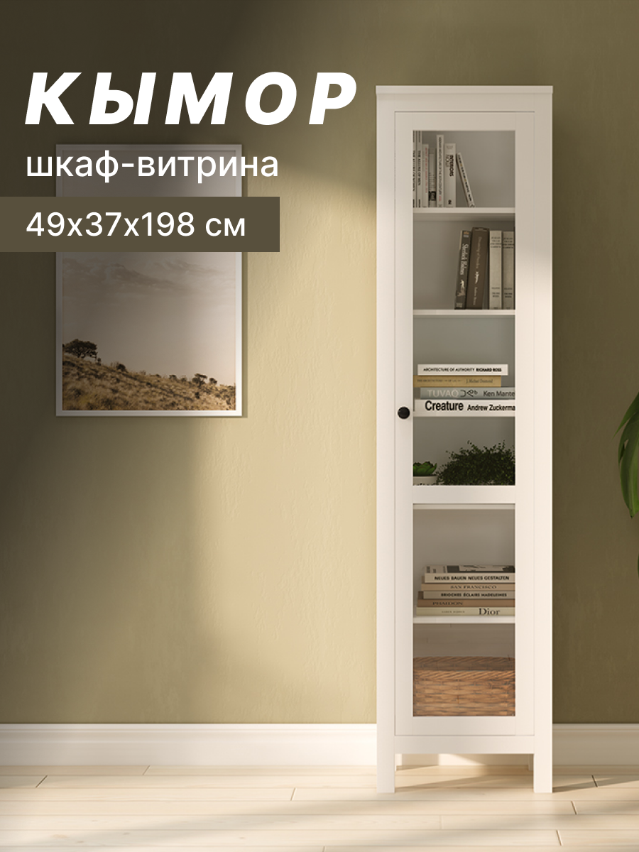 Шкаф-витрина для книг и посуды со стеклянной дверцей кымор, 49х37х198 см, белый: сравнение цен, характеристики, фото, актуальное наличие и цены.