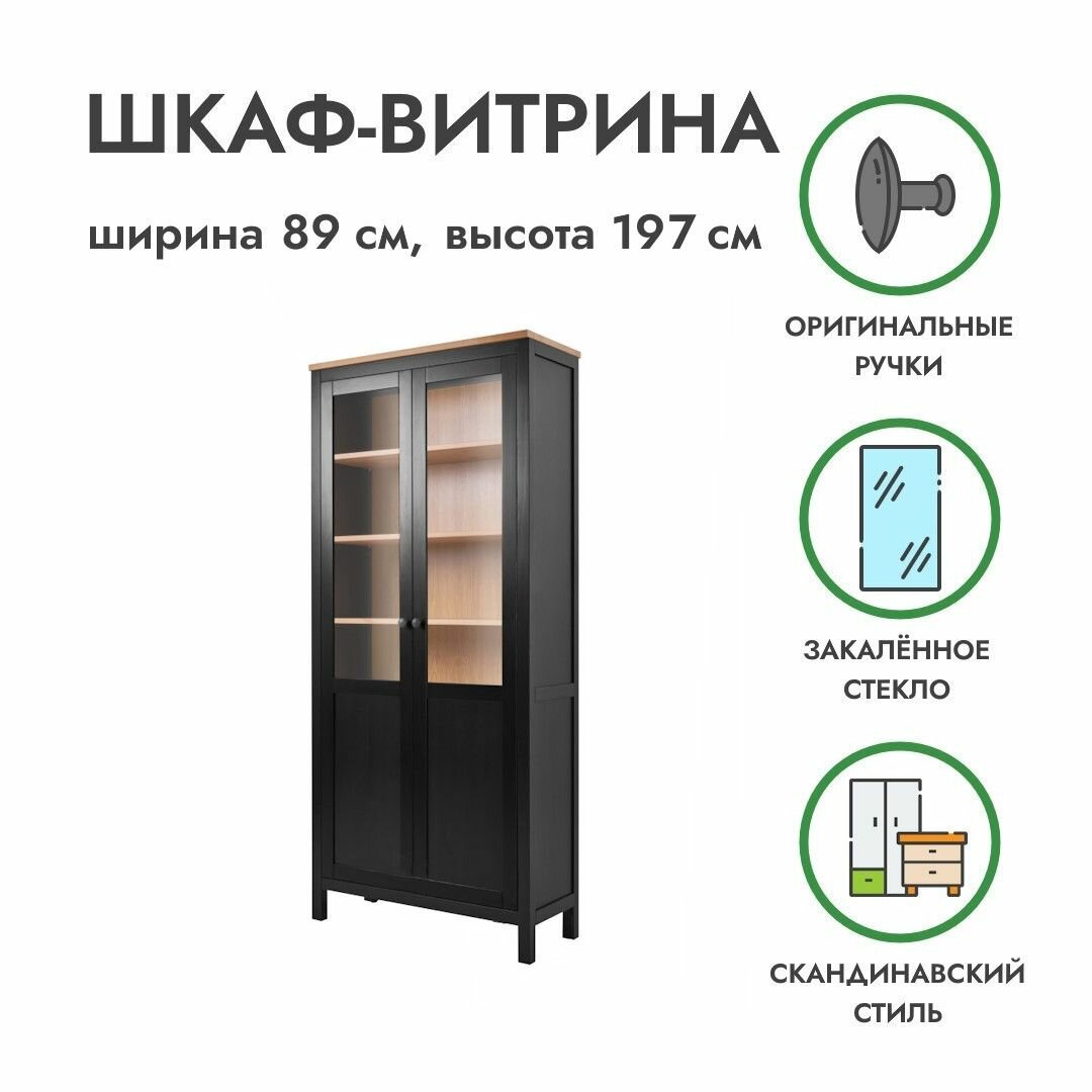 Шкаф-витрина в гостиную Хемнэс по технологии икеа, чёрный/светло-коричневый из массива сосны, 89х36х197см: сравнение цен, характеристики, фото, актуальное наличие и цены.